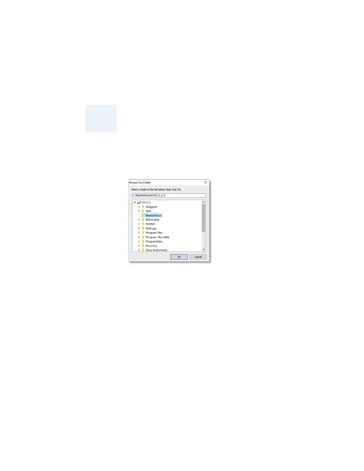 This Dialog-Box allows manual selection of another folder to install the Echo™