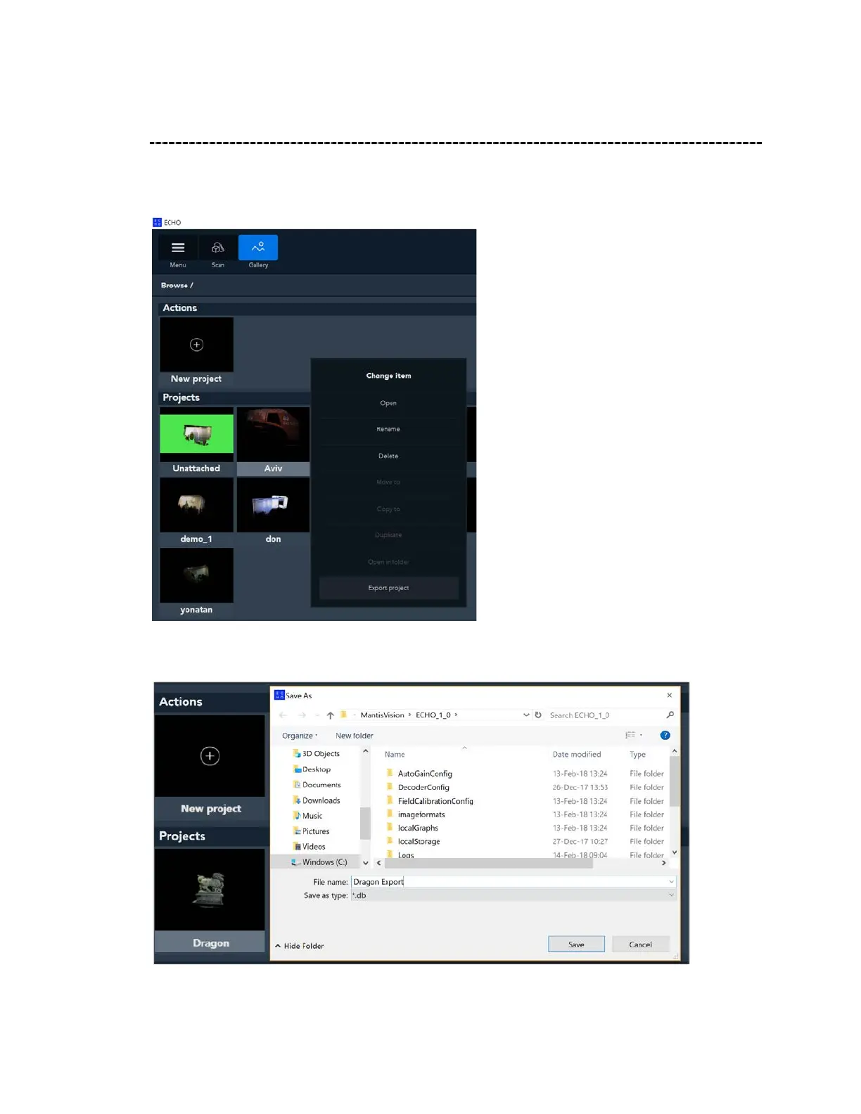 In Gallery mode, right-click on the project that you want to export. Click on Export a