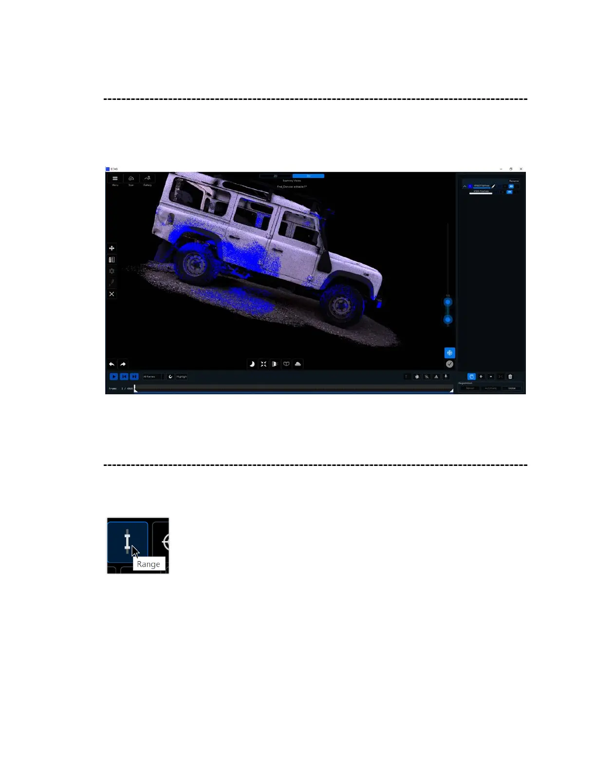 Use the Range tool to adjust the distance of the points that appear post-scan. Begin by