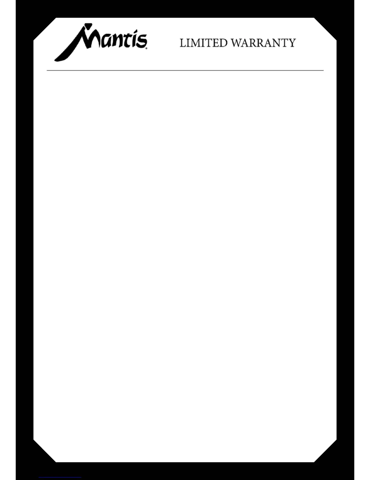 MANTIS extends this limited warranty against defects in material and workmanship for a period of two (2) years