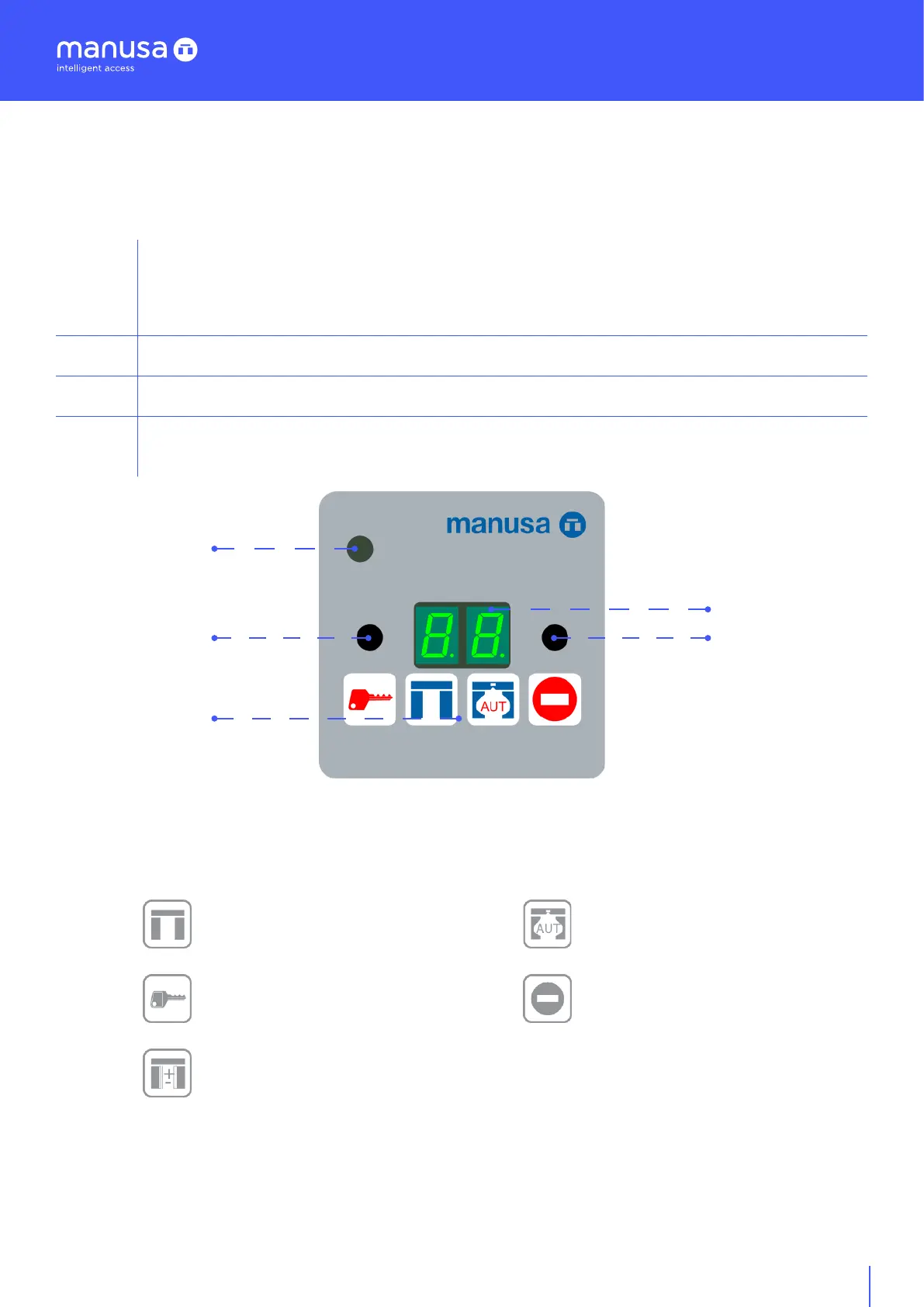 To select the door operating mode, press the appropriate key.