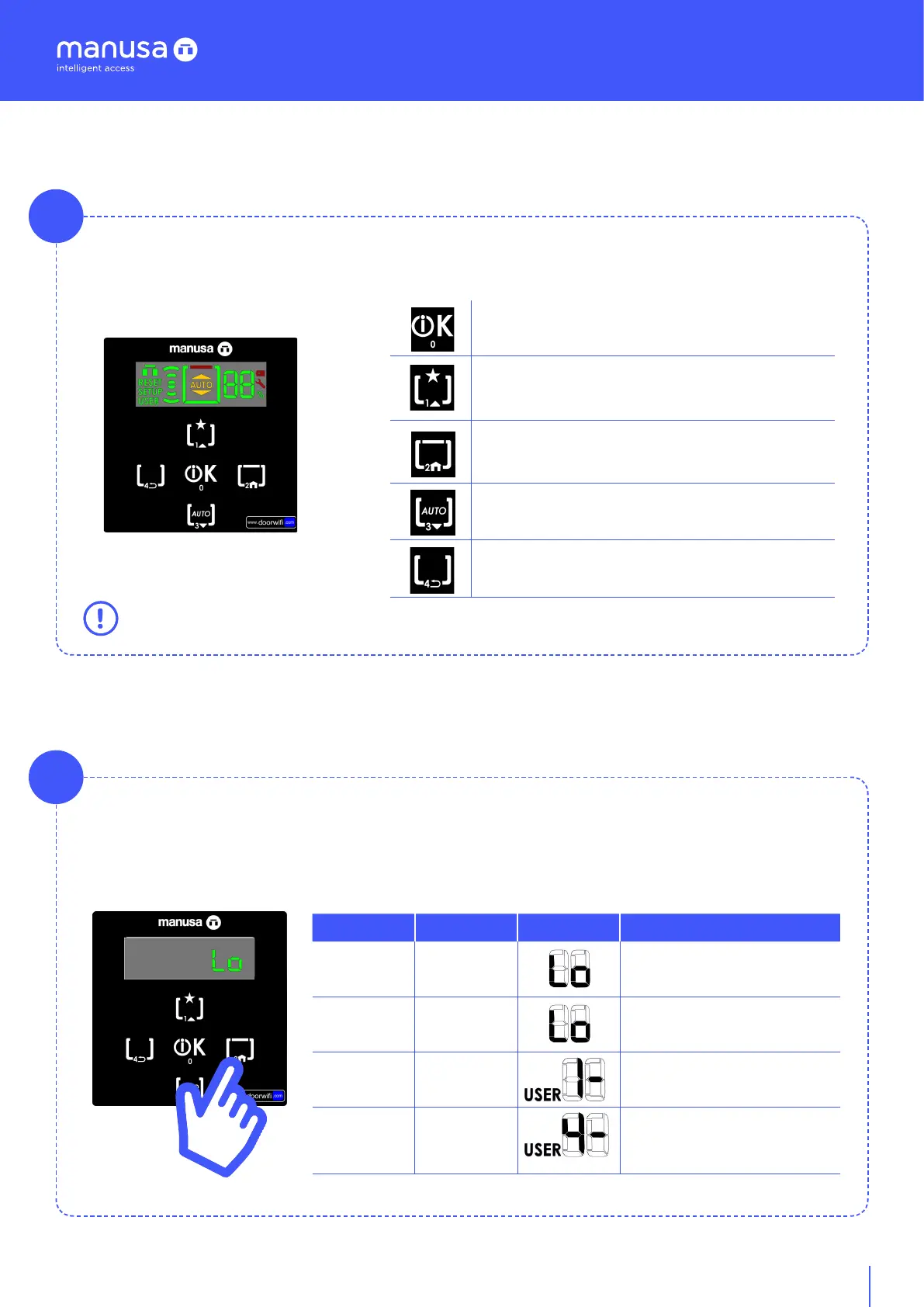 The user menu has five keys for the operation of its functions. Depending on how they are pushed, they can