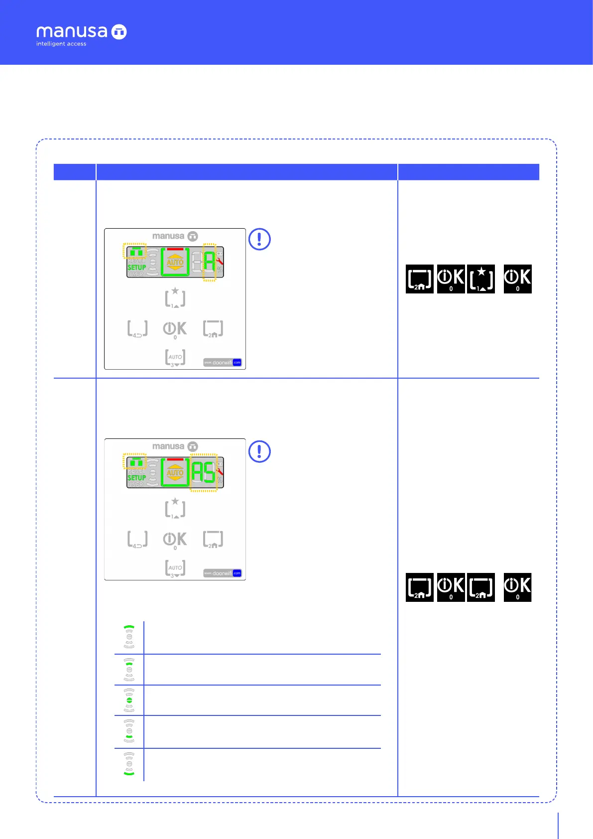 seconds, the self-adjustment starts, and the marked icons flash