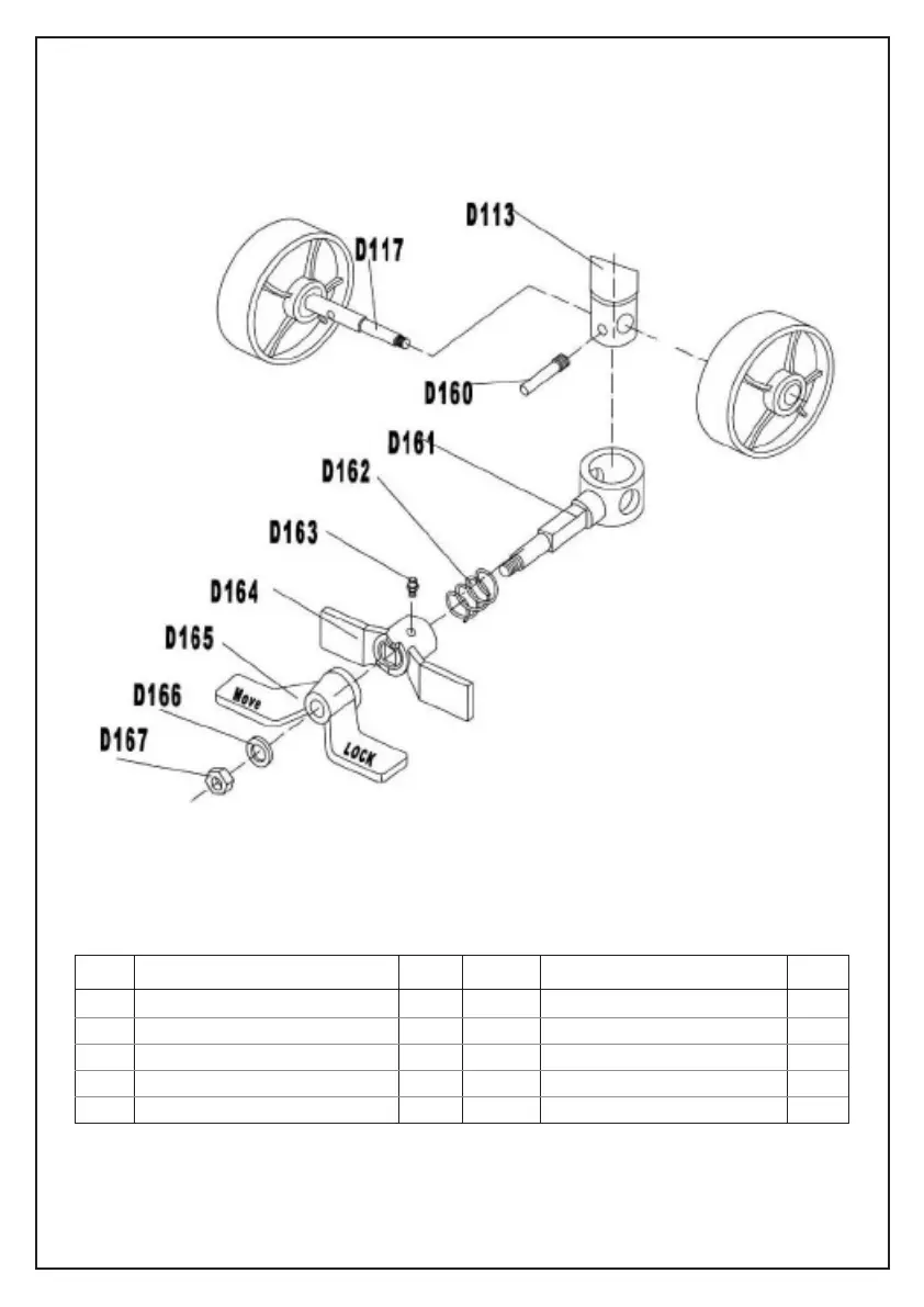 D117 Aksel til styrehjul 1 D163 Olie - holder 1