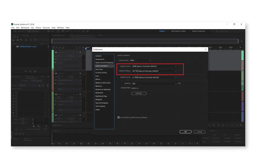 STEP 4: Click on Default Input and Output tab at Audio Hardware and choose Maono Podcaster, then click OK and confirm.