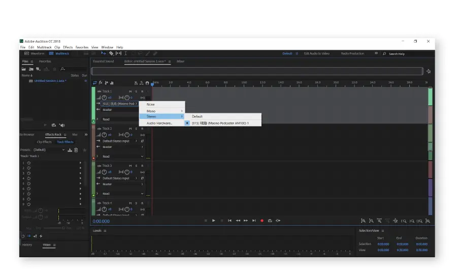 STEP 7: Click on Default stereo input at any track and choose Maono Podcaster AM100 as track input.