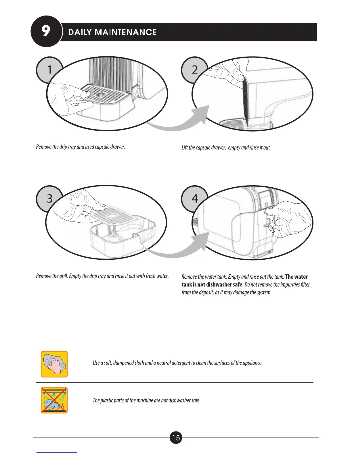 Map LUNA CM1287FL - DAILY MAINTENANCE; Cleaning Key Components; Dishwasher Safety Reminder