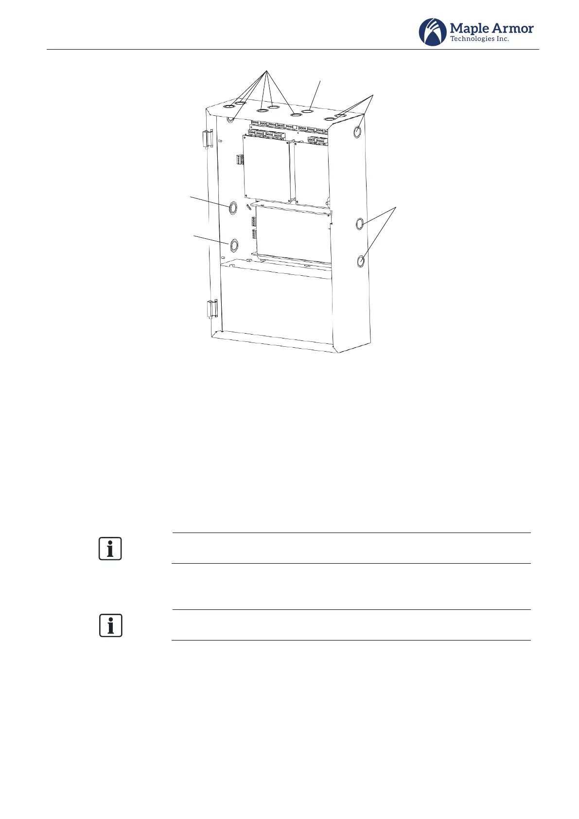 Mark the locations of the two upper mounting bolts of the cabinet on the wall. See Figure 14 for the