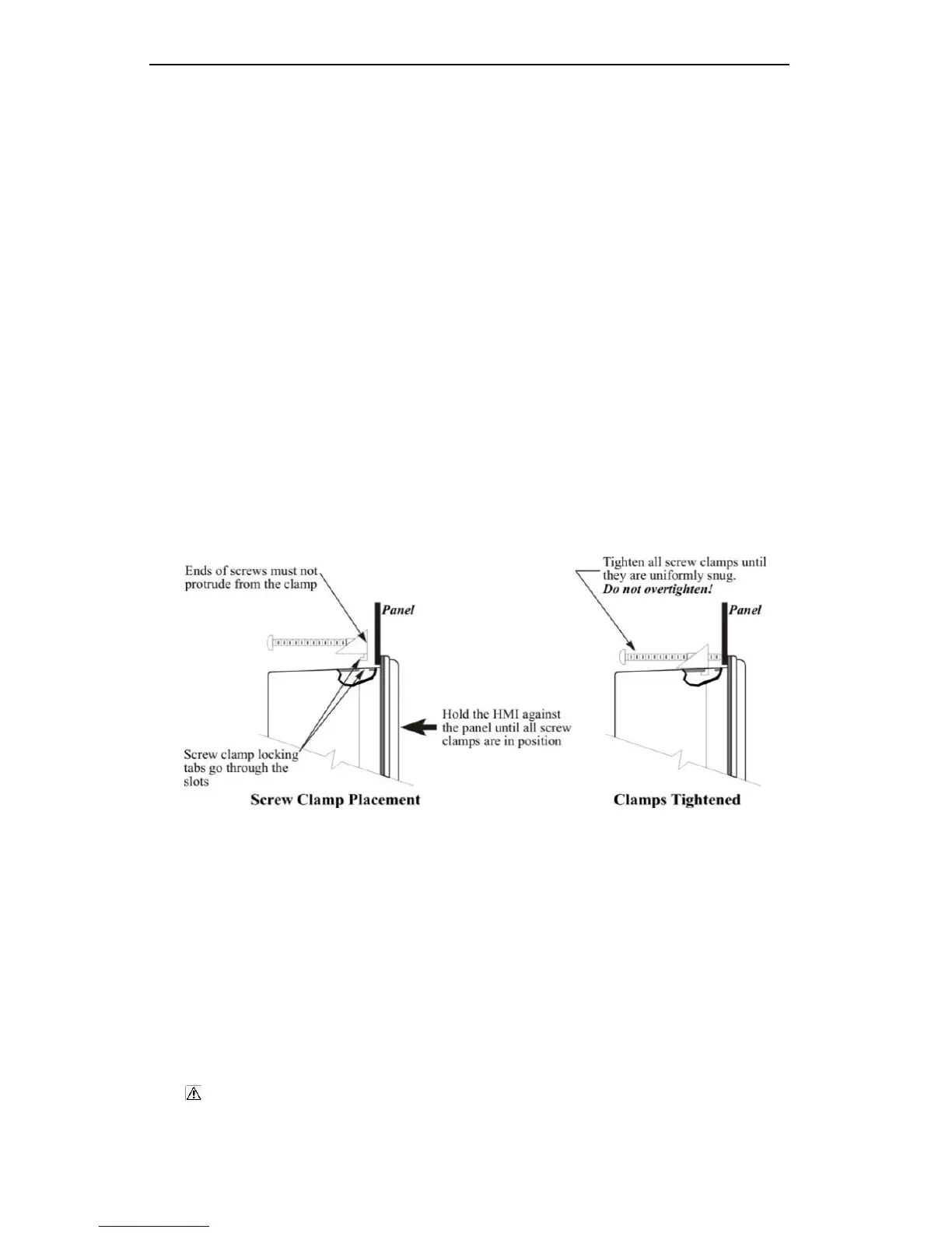 2. Set the HMI in the panel cutout and hold it in place until all clamps