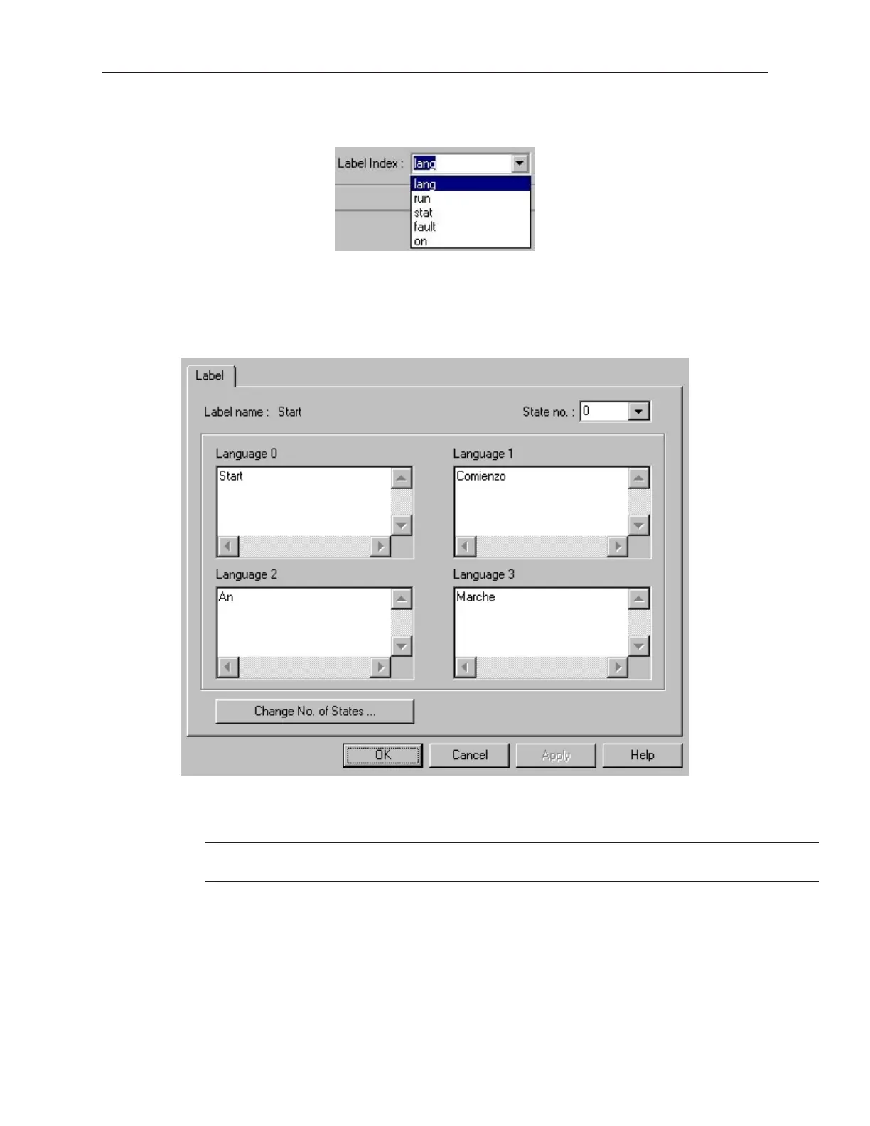 dialog. In the State No. list pulldown box, select the state that the text is representing.