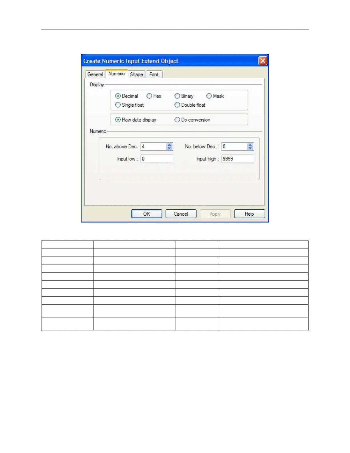 7. If Decimal format is selected, then you have the option of selecting Raw data display or Do
