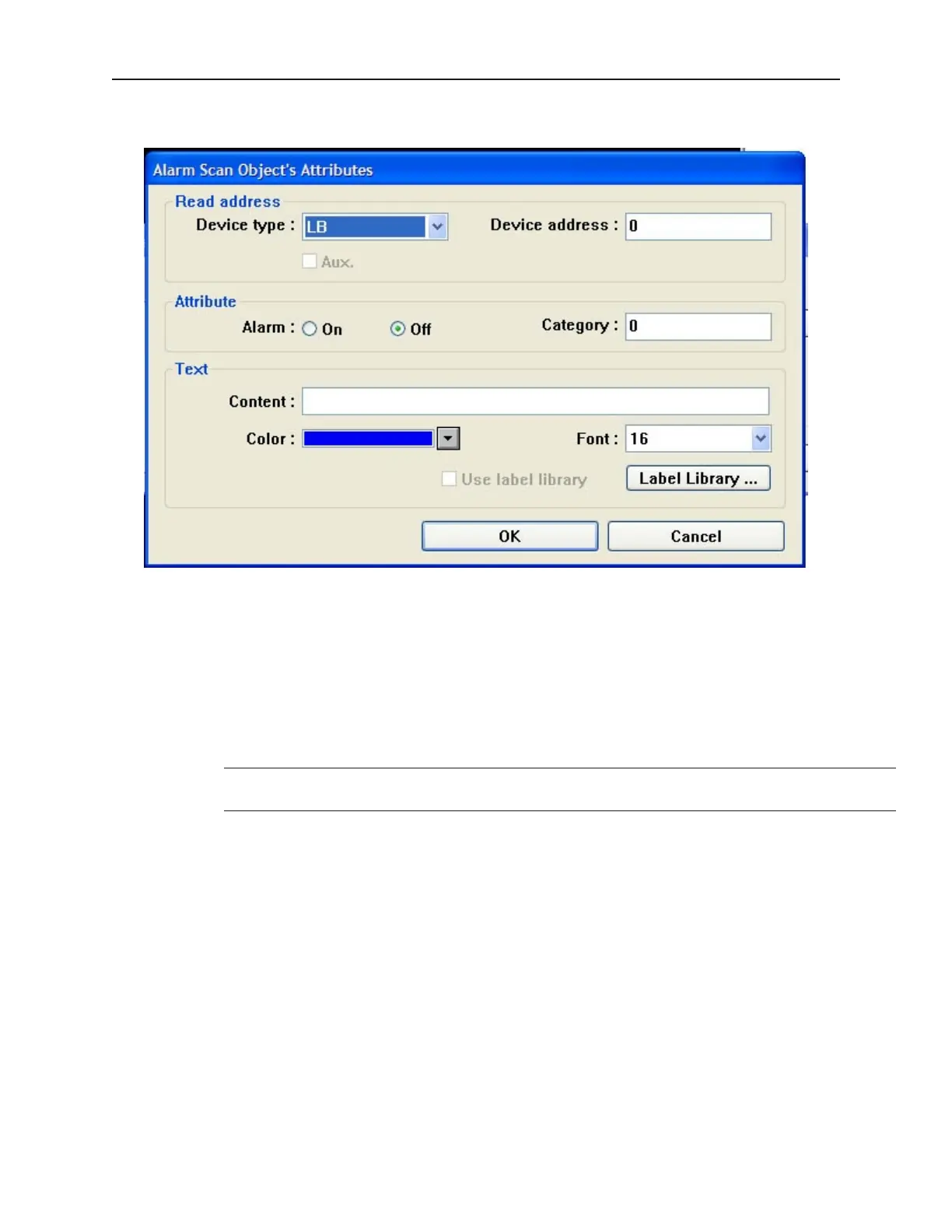 2. Click the Add... button. The Alarm Scan Object’s Attributes dialog box appears.