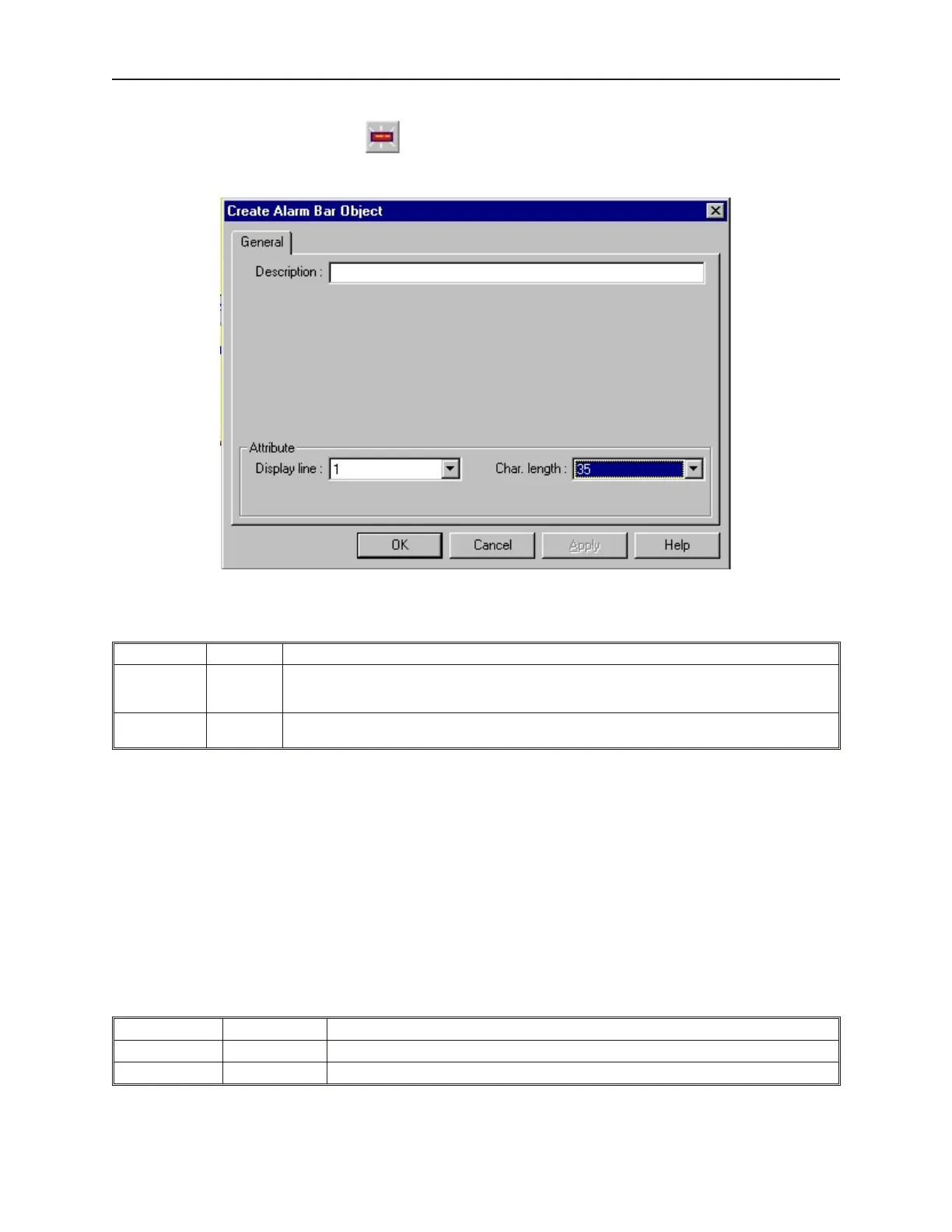2. Use the Description: box to enter a title for the Alarm Bar part. A description is not