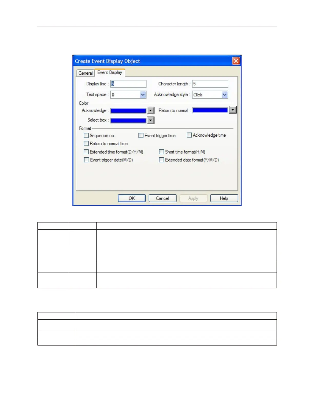 7. Click the Event Display tab to display the Event Display form.