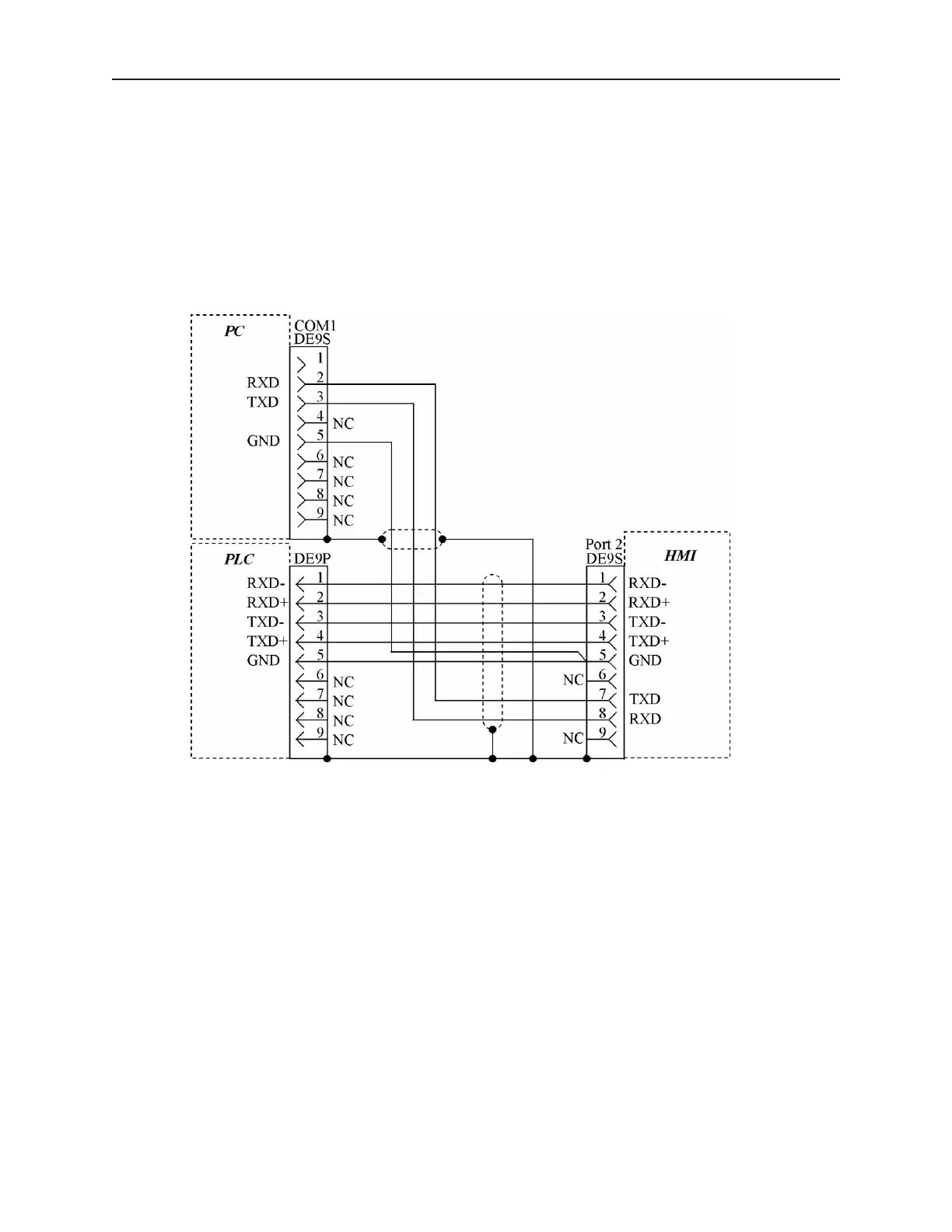 PC’s TX pin(s), and the PLC’s TX pin(s) is connected to the PC’s RX pin(s). Any common pins also need to be