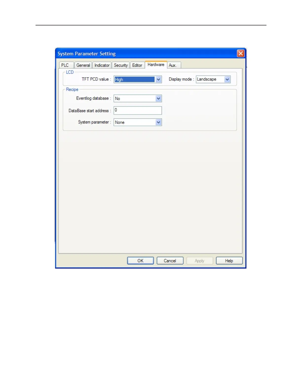 · System Parameter: Enables storing of System Parameters in part of the recipe module’s non-volatile
