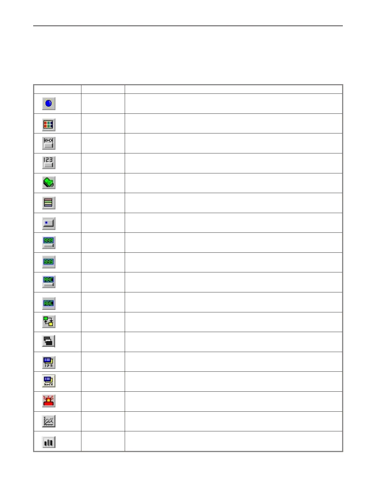 Function Key Creates a touch screen graphics object, which displays a window or edits a PLC register.