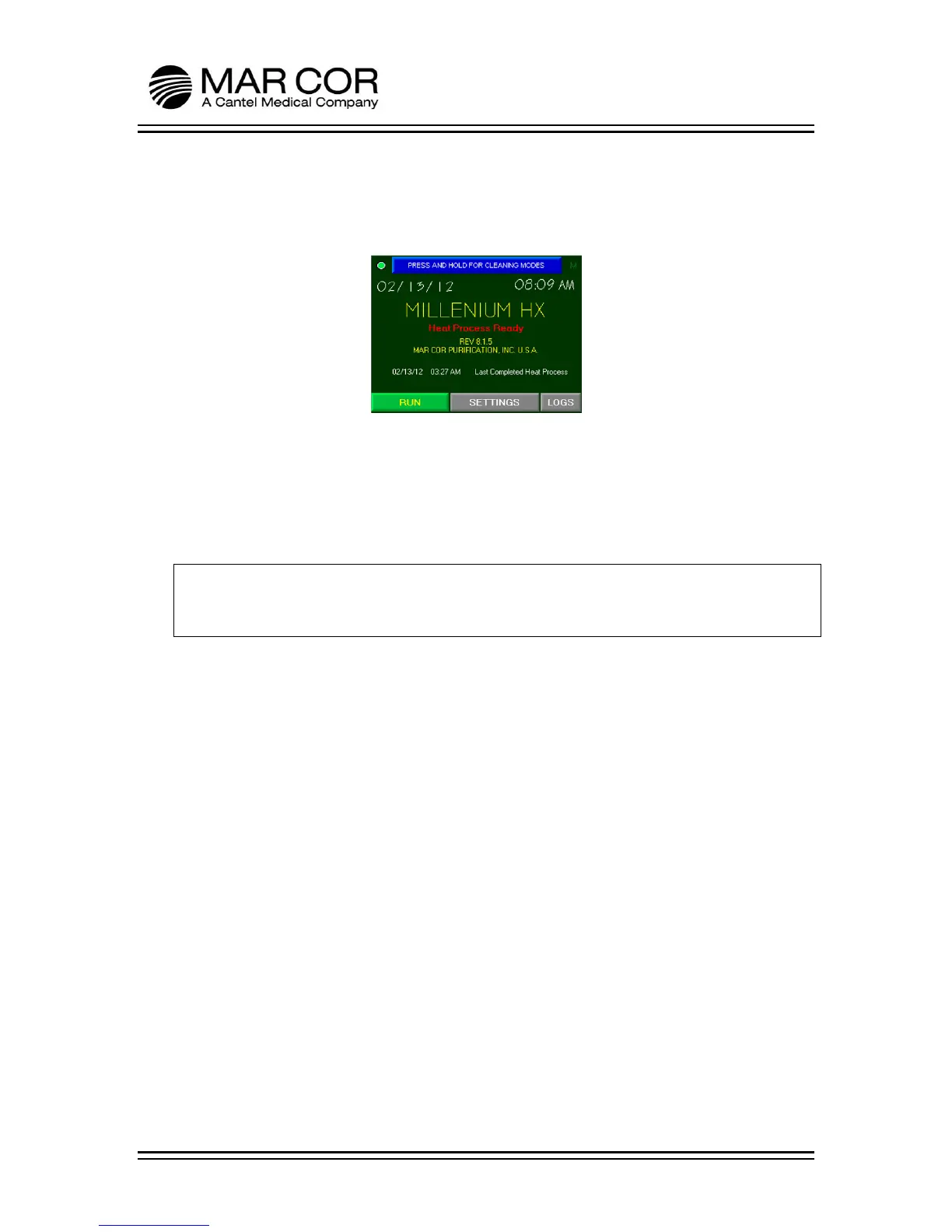 15. Press RUN from the Main Screen. Rinse for an additional 15 minutes or until the