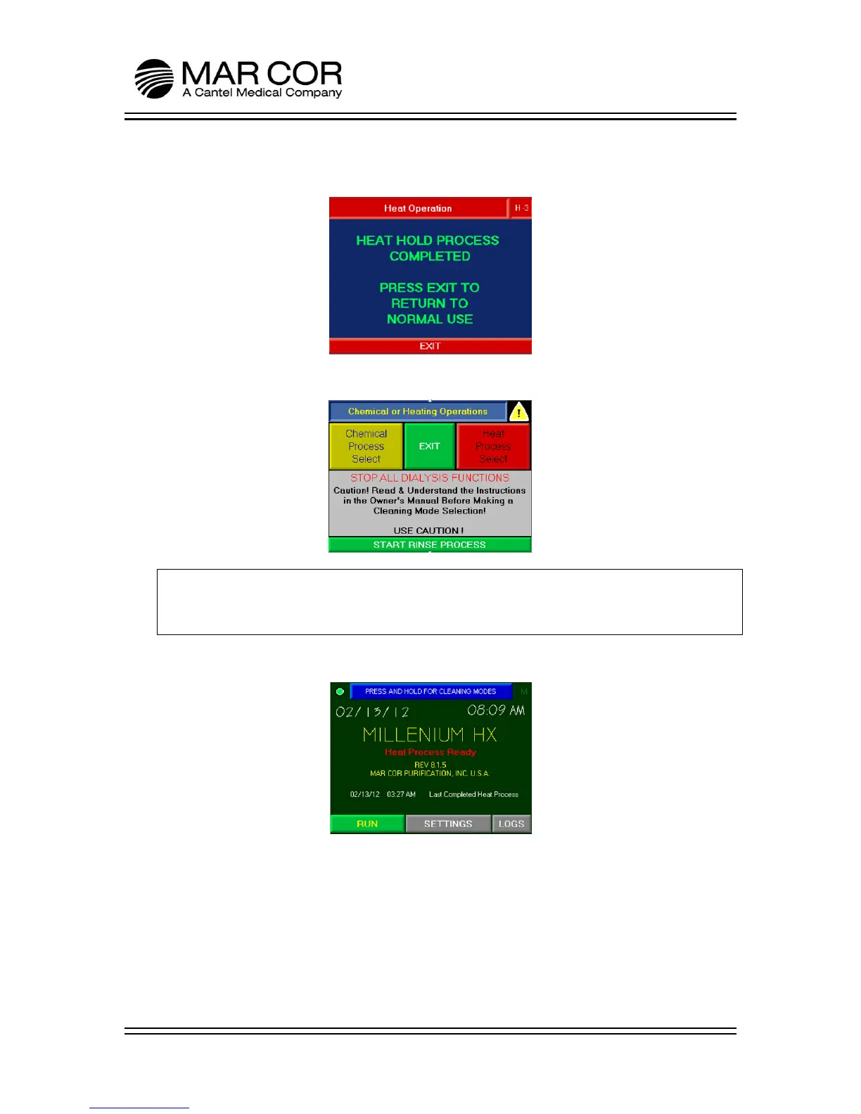 the EXIT button to return to the CHEMICAL OR HEATING OPERATIONS screen.