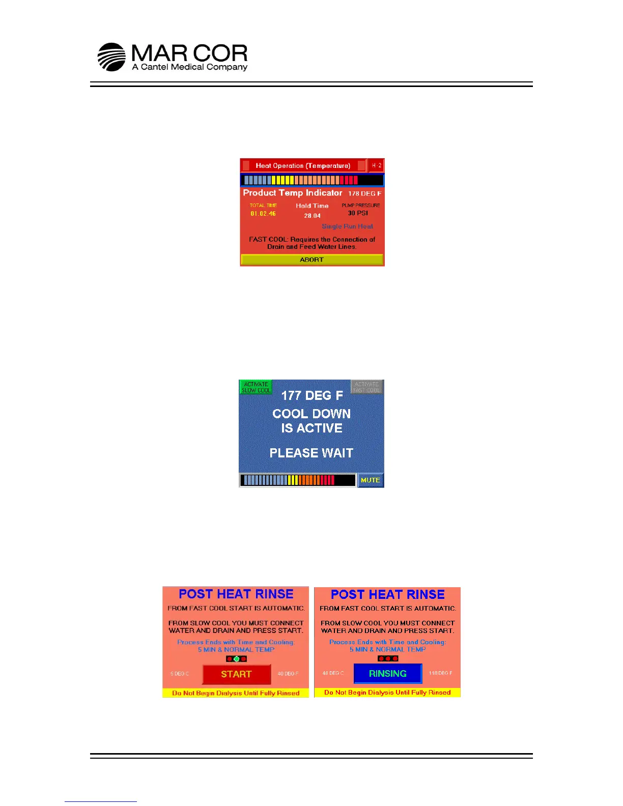 POST HEAT RINSE screen. If the RO is in Fast Cool and water and drain are