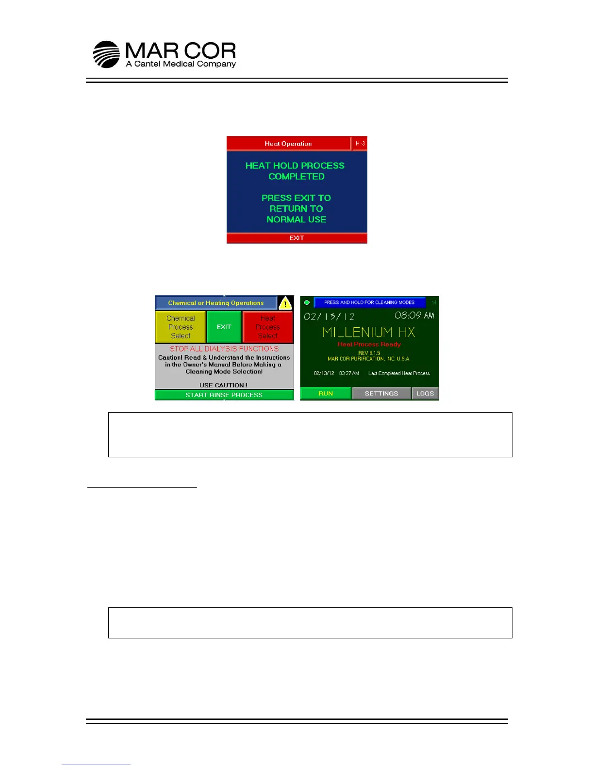 11. Press EXIT to move to the Main Screen from the Chemical or Heating Operations