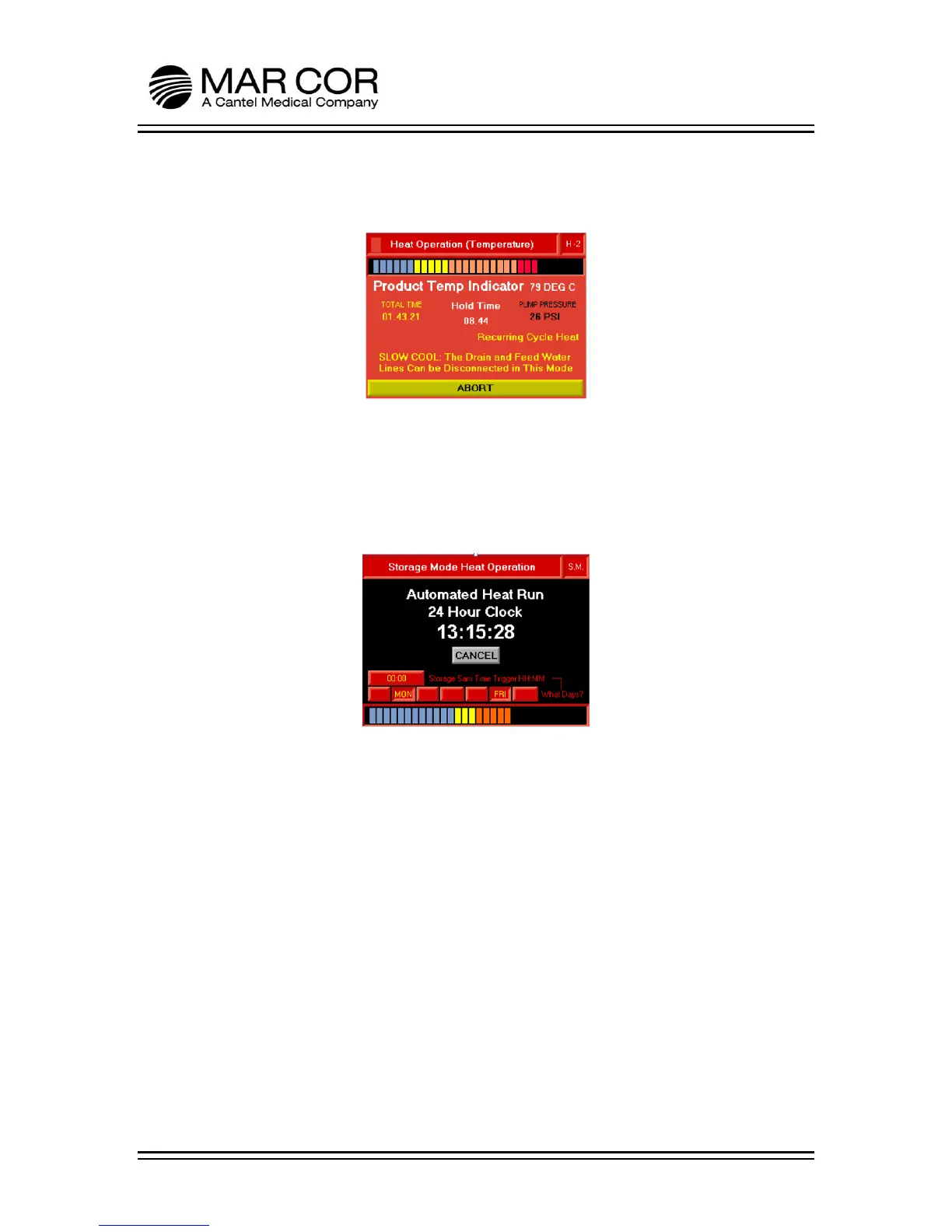 screen will display a 24 hour clock and the operator can adjust the days of the
