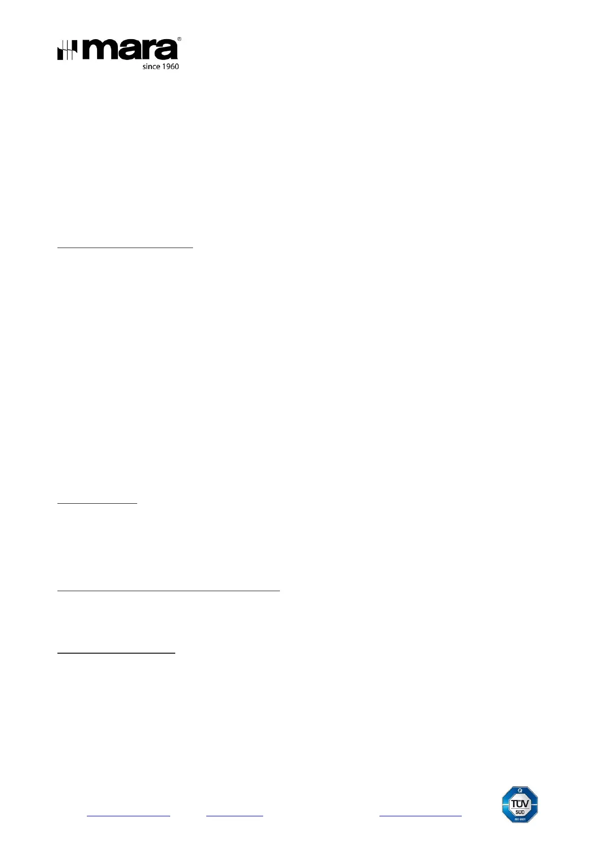 repair of the product can be borne by MARA Srl if it is determined that the repair is under warranty.