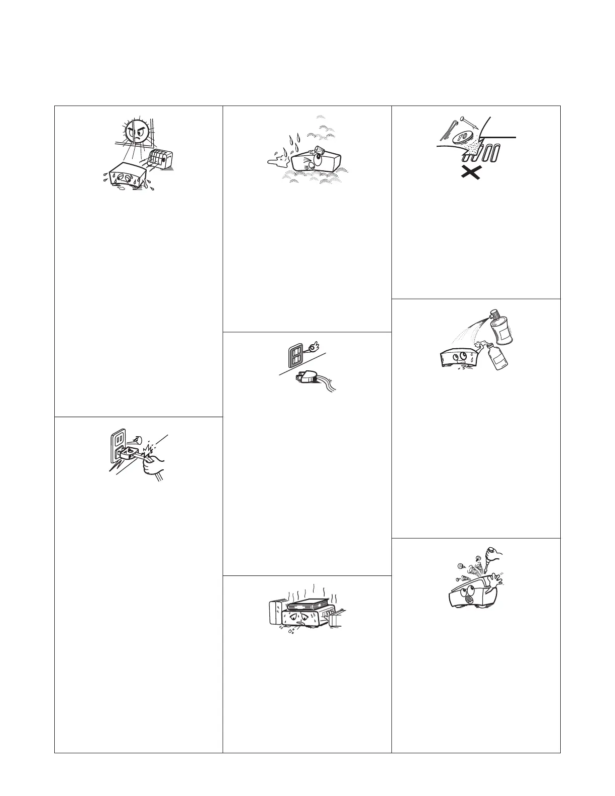 • Mantenga el equipo libre de humedad, agua y
