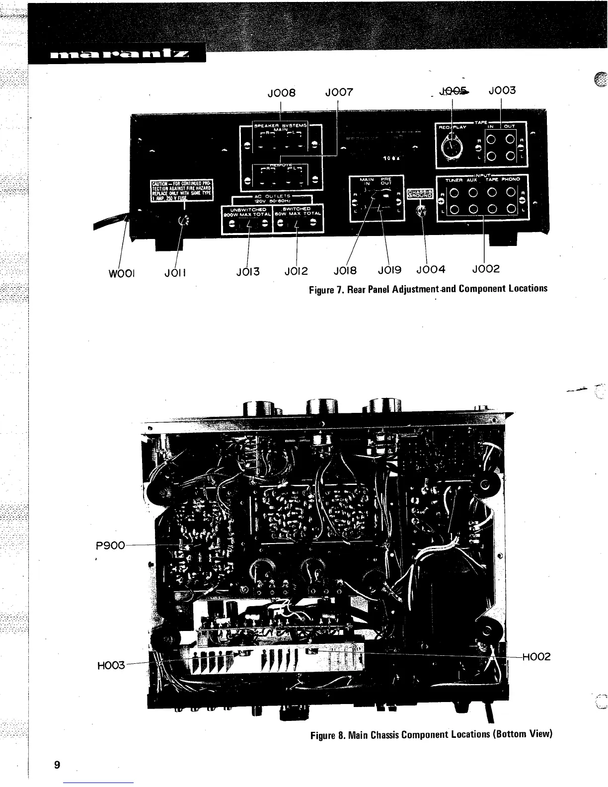 Marantz 1030 - Rear Panel Adjustment and Component Locations; Main Chassis Component Locations (Bottom View)