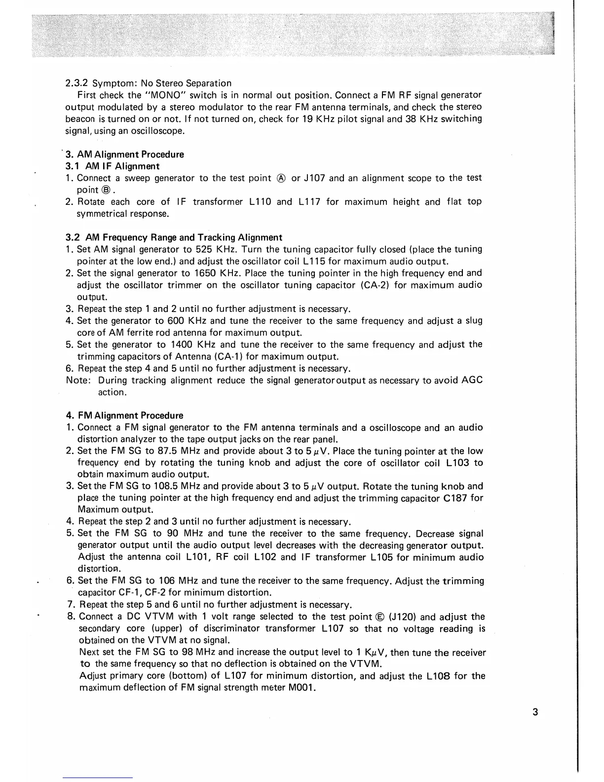 Marantz 105 - Marantz Model 105 Alignment Procedures; AM Alignment Steps; FM Alignment Steps