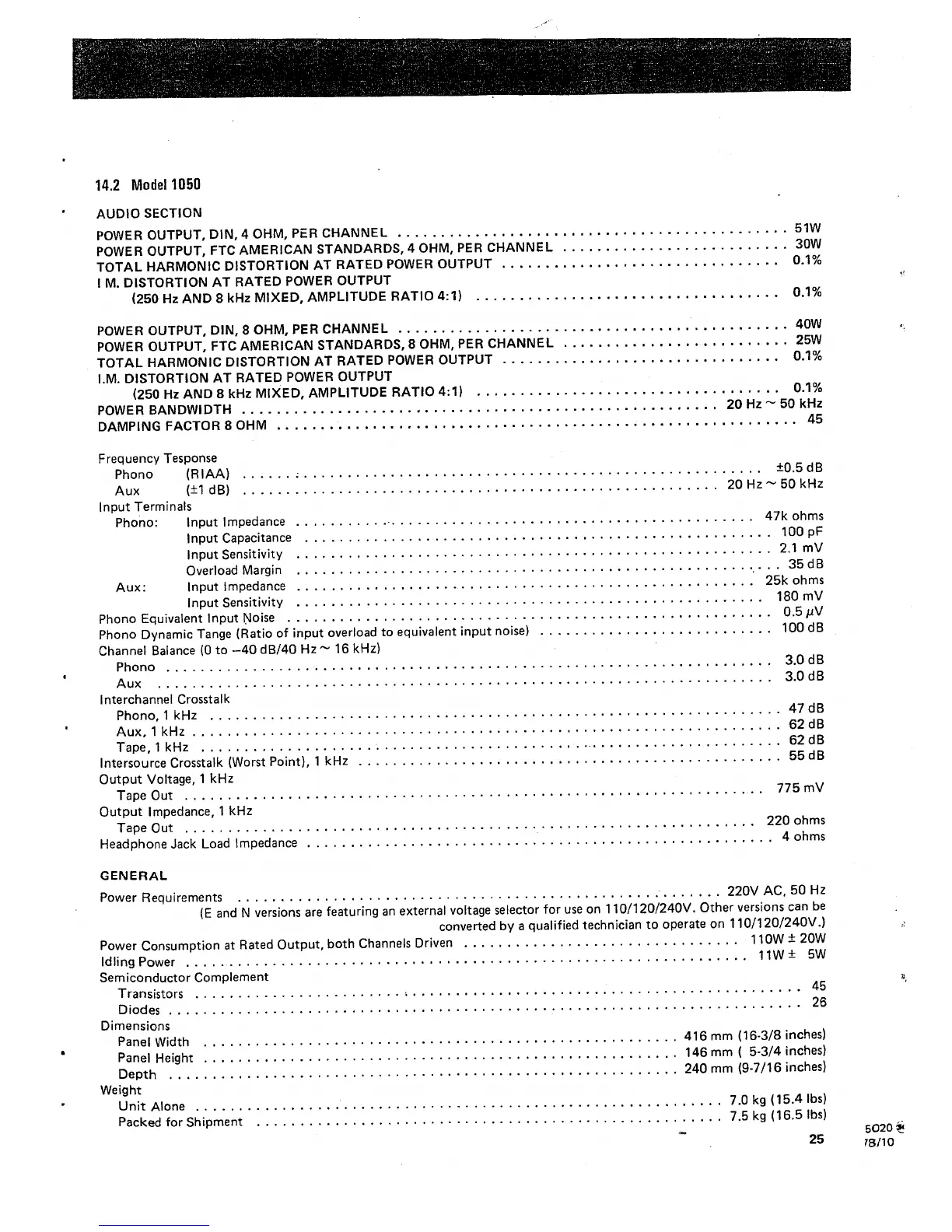 Marantz 1050 - Model 1050 Technical Specifications