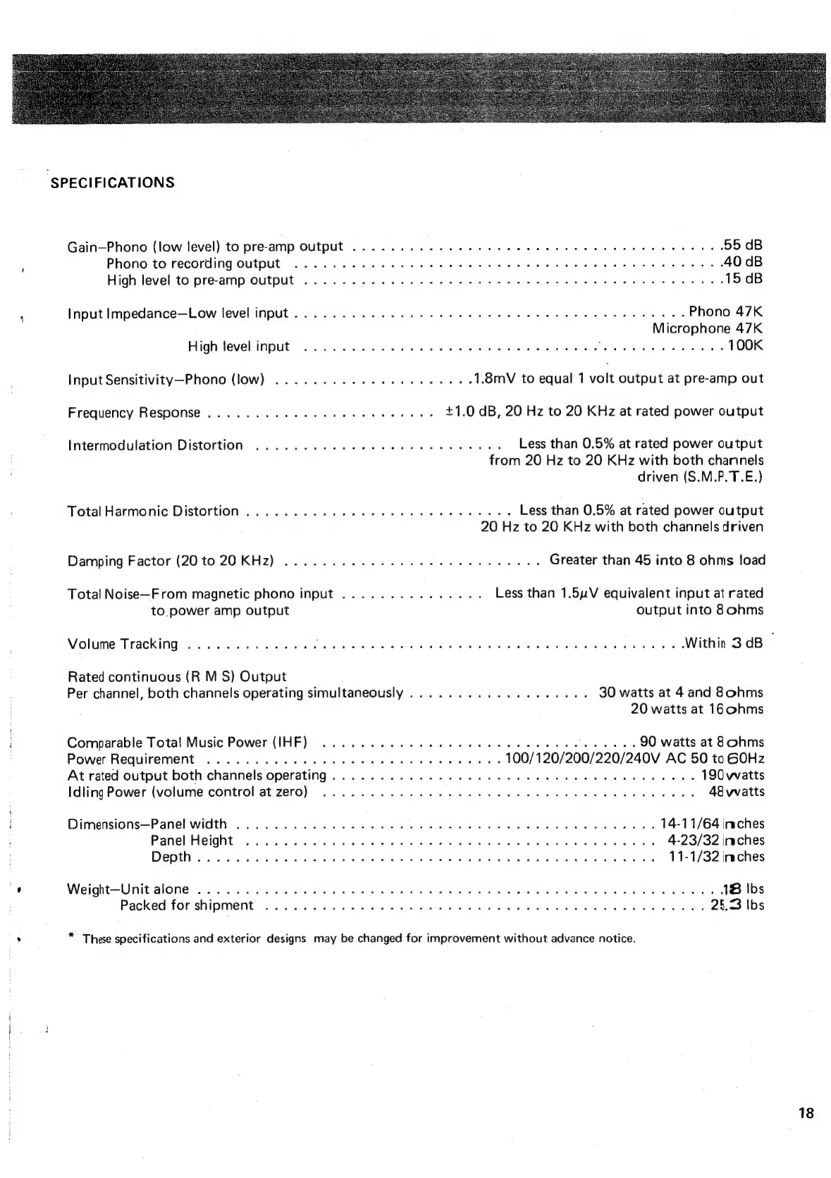 “SPECIFICATIONS