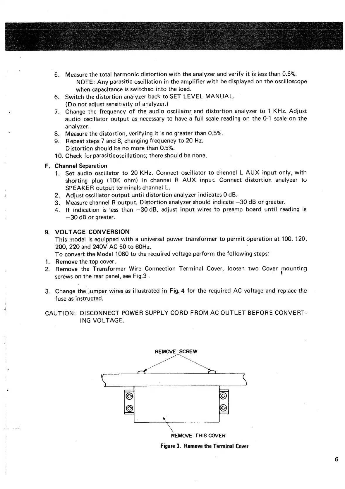 Marantz 1060 - Distortion and Channel Separation Tests; Harmonic Distortion Measurement; Channel Separation Testing; AC Voltage Conversion