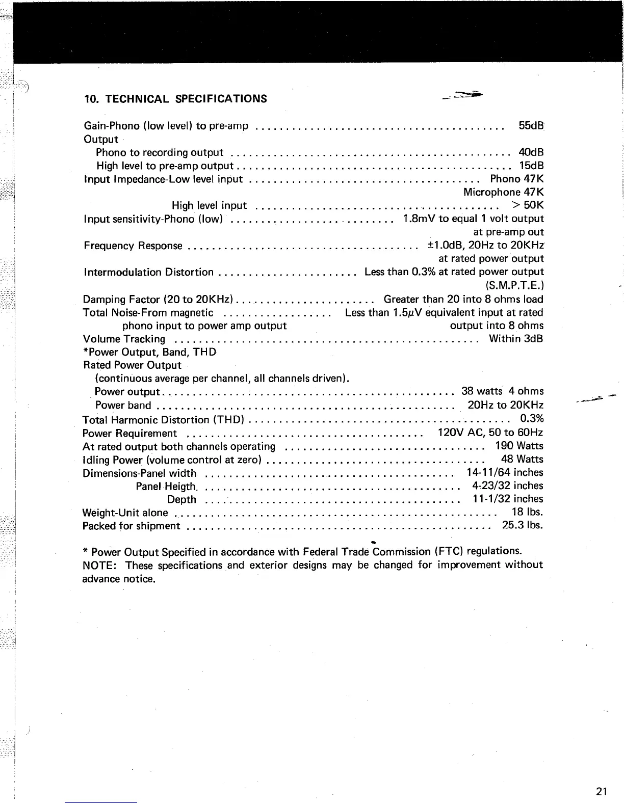 Marantz 1070 - Technical Specifications