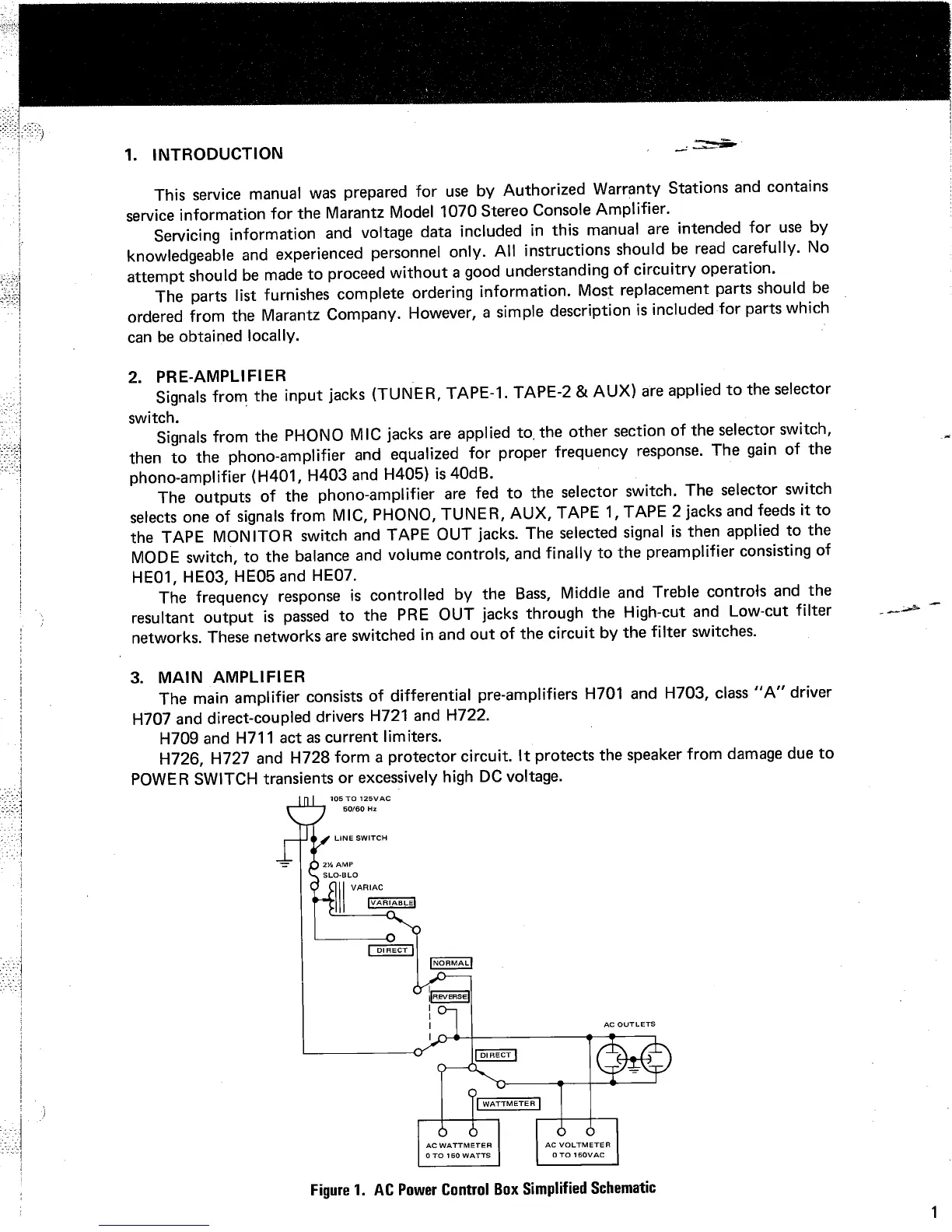 Marantz 1070 - Introduction; Pre-Amplifier; Main Amplifier