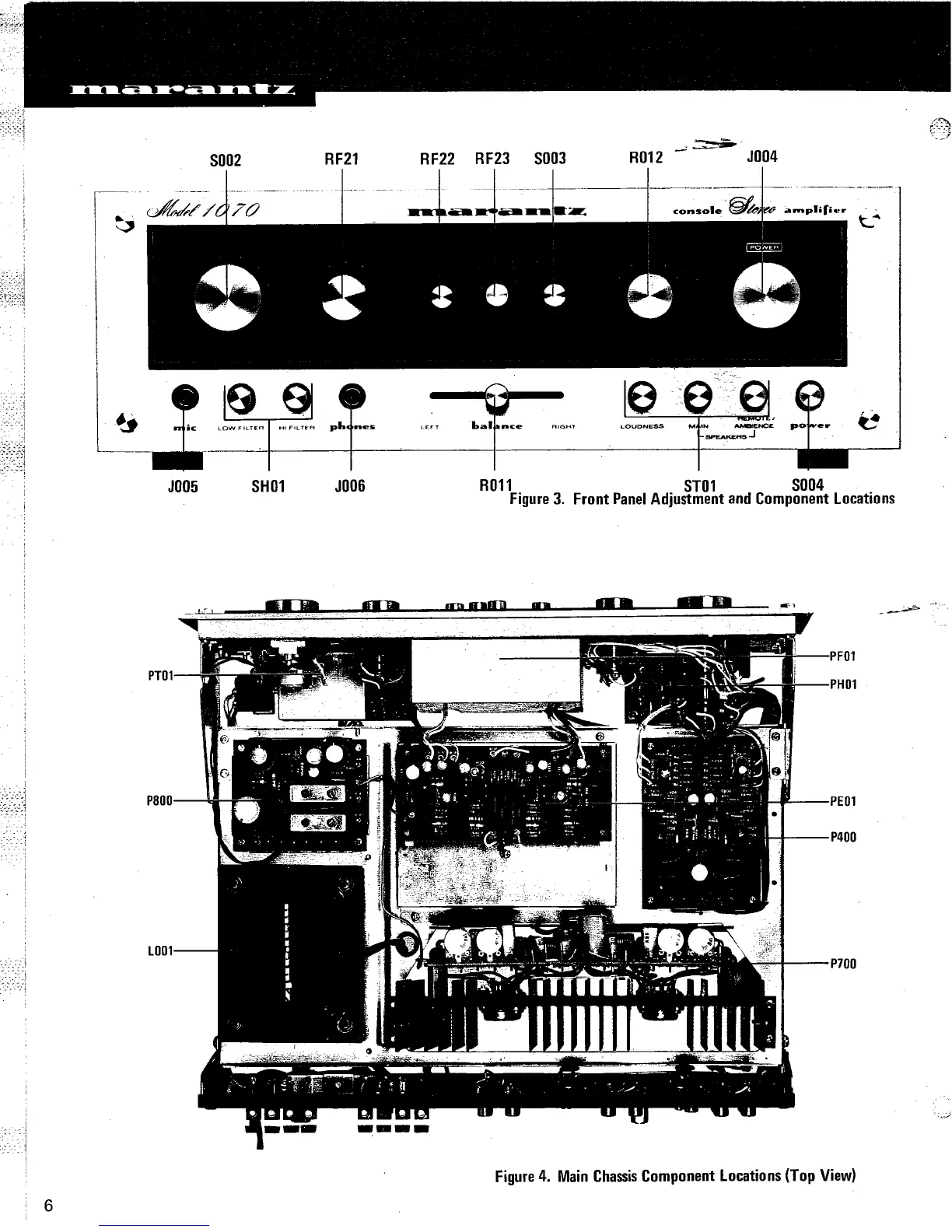 Marantz 1070 - Front Panel Adjustment and Component Locations; Main Chassis Component Locations (Top View)