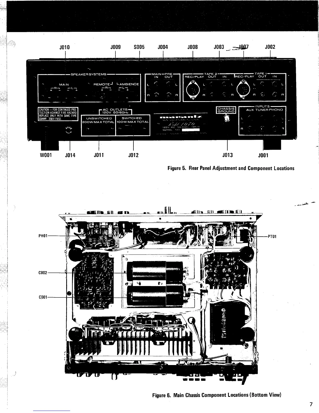Marantz 1070 - Rear Panel Adjustment and Component Locations; Main Chassis Component Locations (Bottom View)