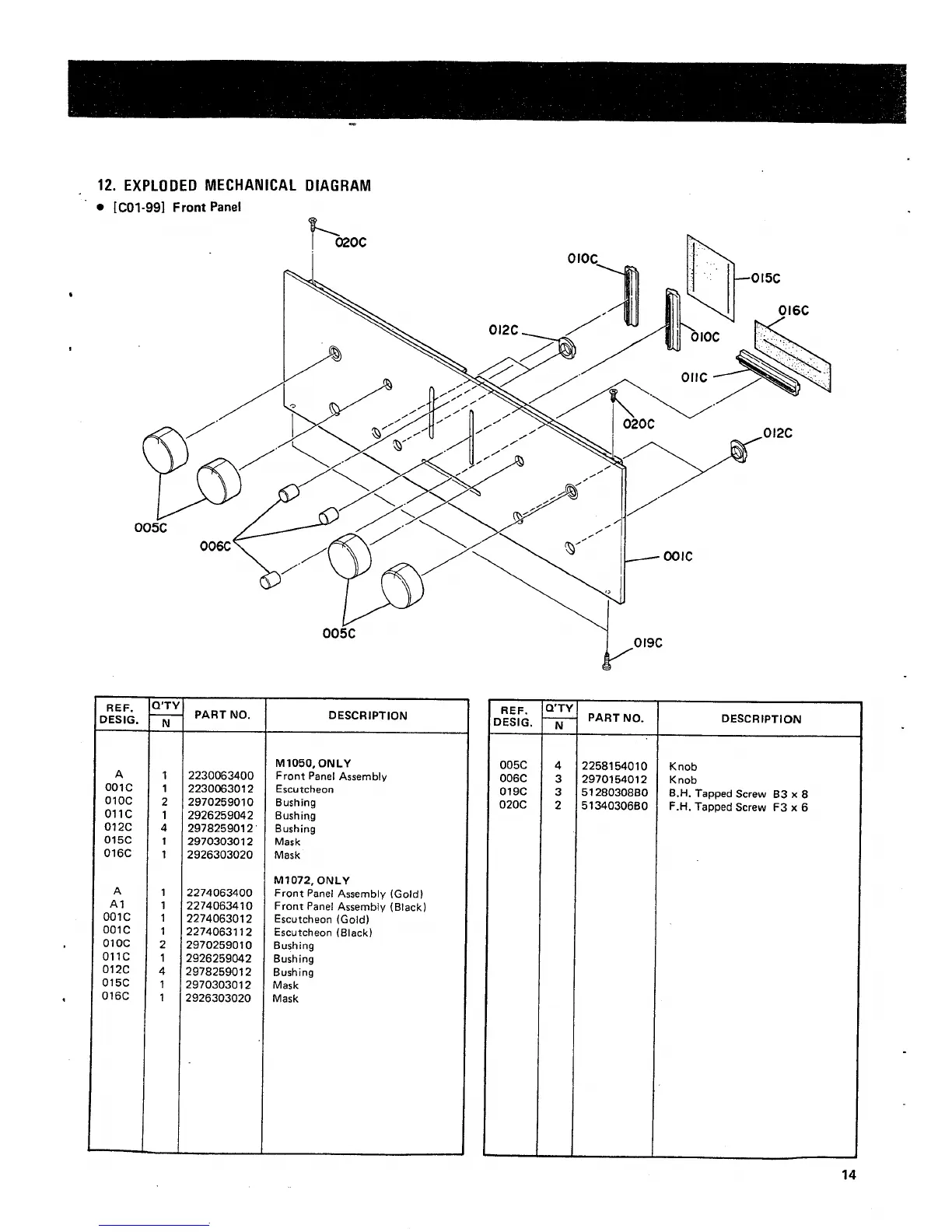 Marantz 1072 - EXPLODED MECHANICAL DIAGRAM; [C01-99] Front Panel