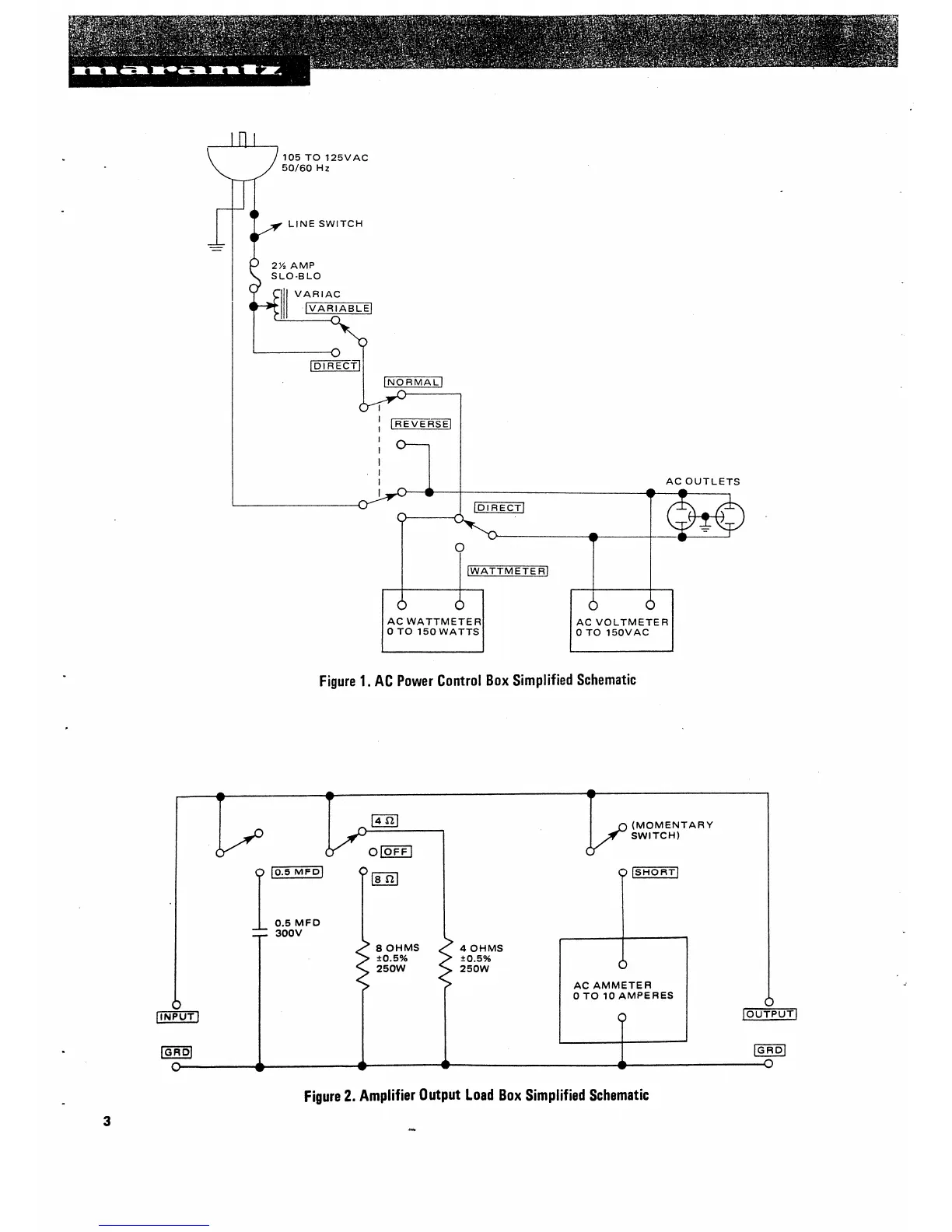 Marantz 1072 - AC Power Control Box Simplified Schematic; Amplifier Output Load Box Simplified Schematic