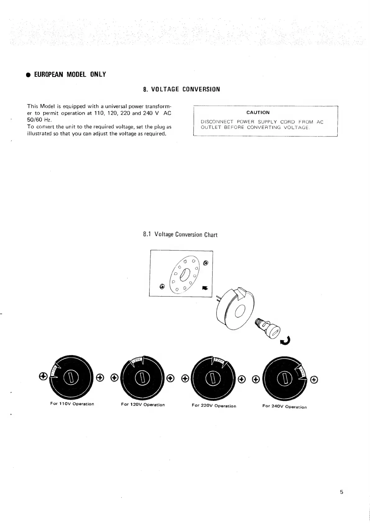 Marantz 1090 - 8. VOLTAGE CONVERSION; Voltage Conversion Chart and Procedure