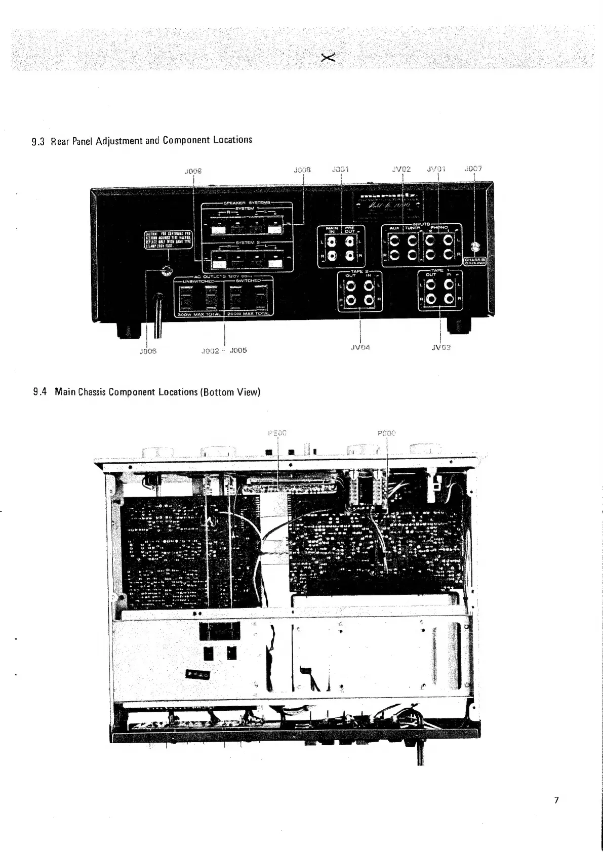 Marantz 1090 - 9. MAJOR COMPONENT LOCATIONS; Rear Panel Component Locations; Main Chassis Bottom View Component Locations