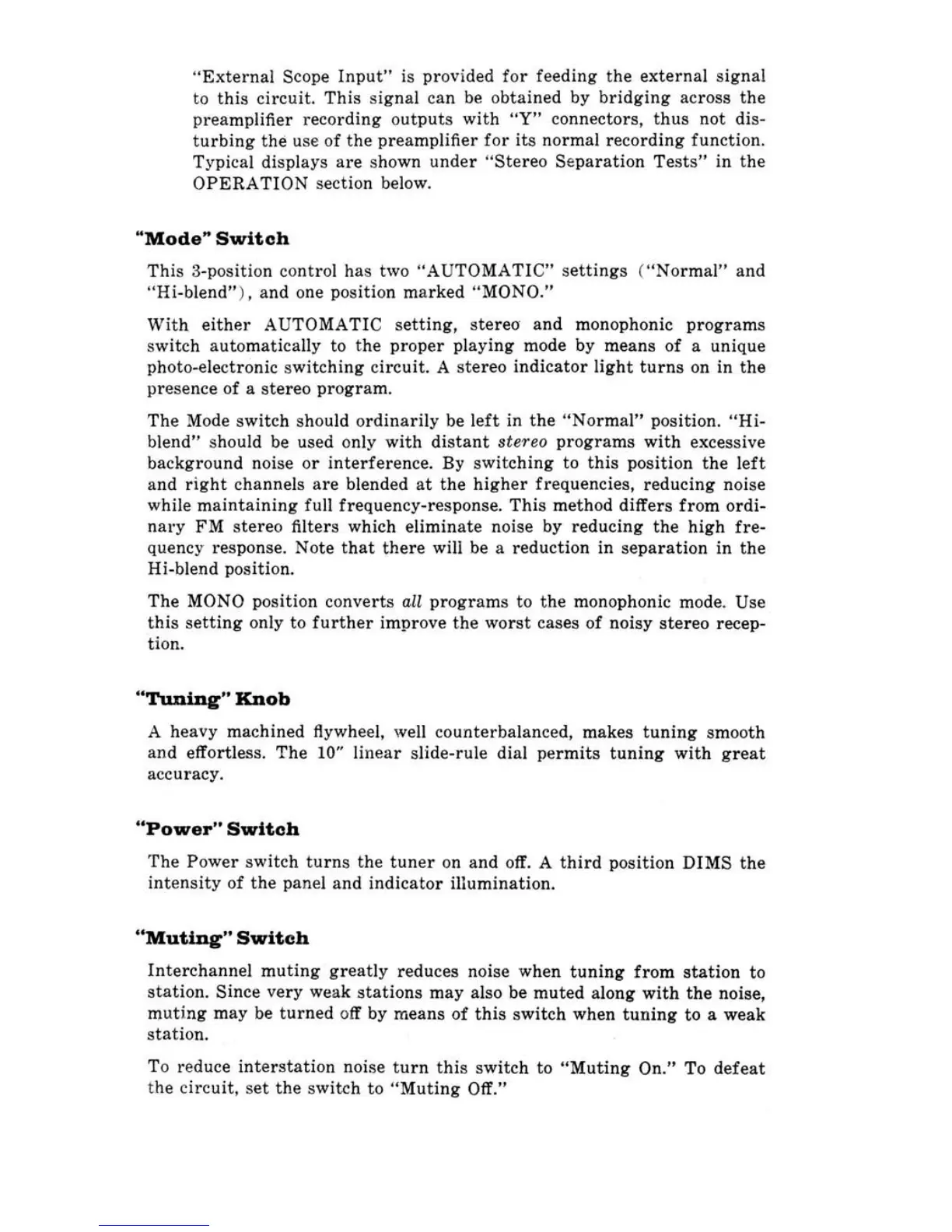 Marantz 10B - Mode Switch; Tuning Knob; Power Switch; Muting Switch