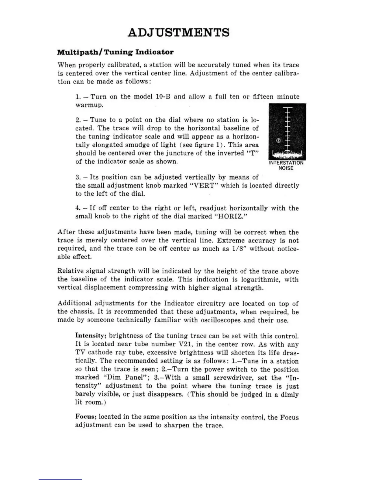 Marantz 10B - Adjustments; Multipath;Tuning Indicator Adjustment; Intensity & Focus Adjustment