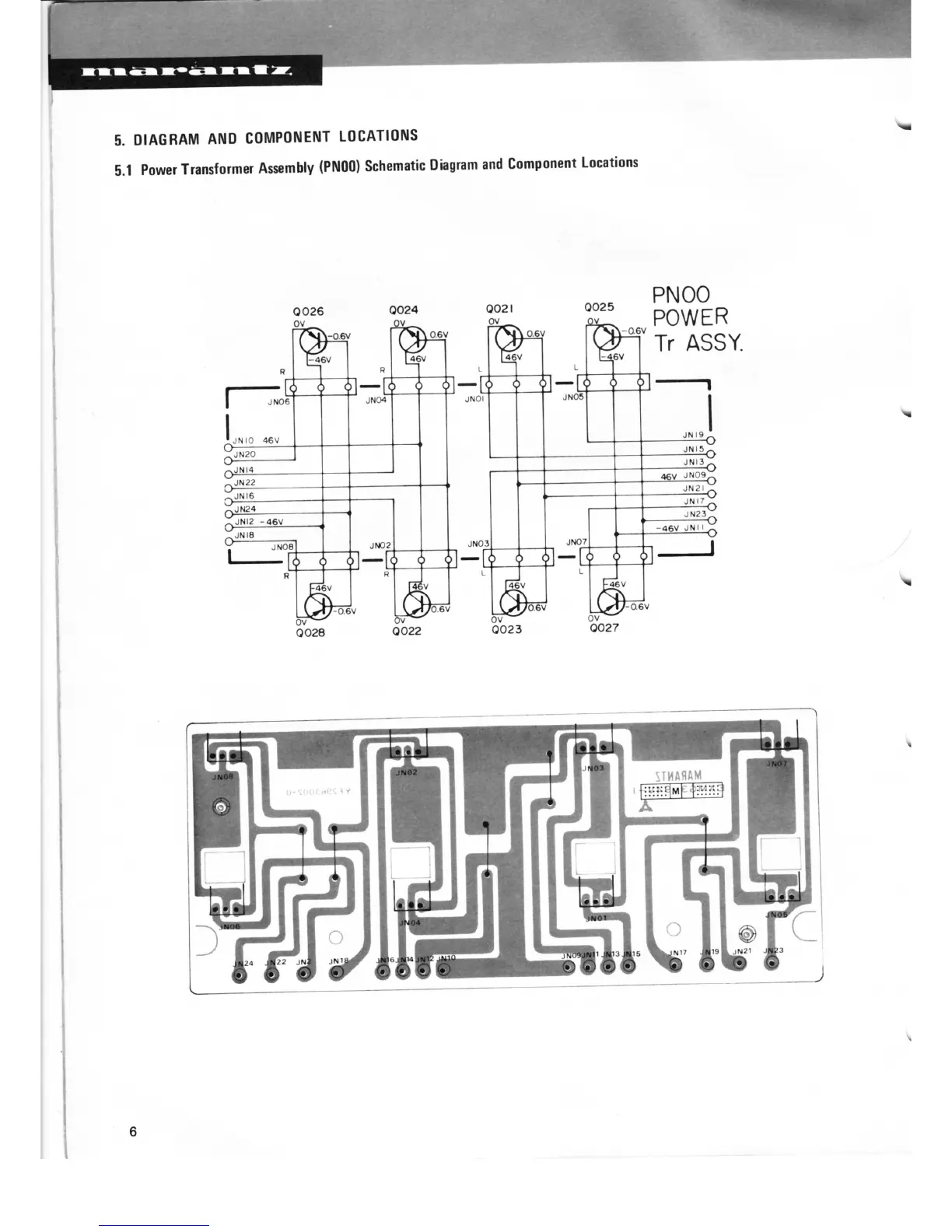 Marantz 1122DC - 5. Diagram and Component Locations; 5.1 Power Transformer Assembly (PN00) Schematic and Component Locations