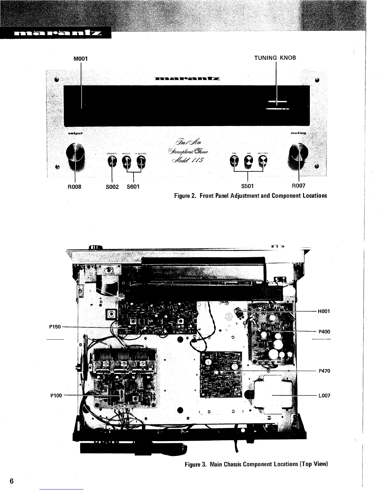 Marantz 115 - Front Panel Adjustment and Component Locations; Main Chassis Component Locations