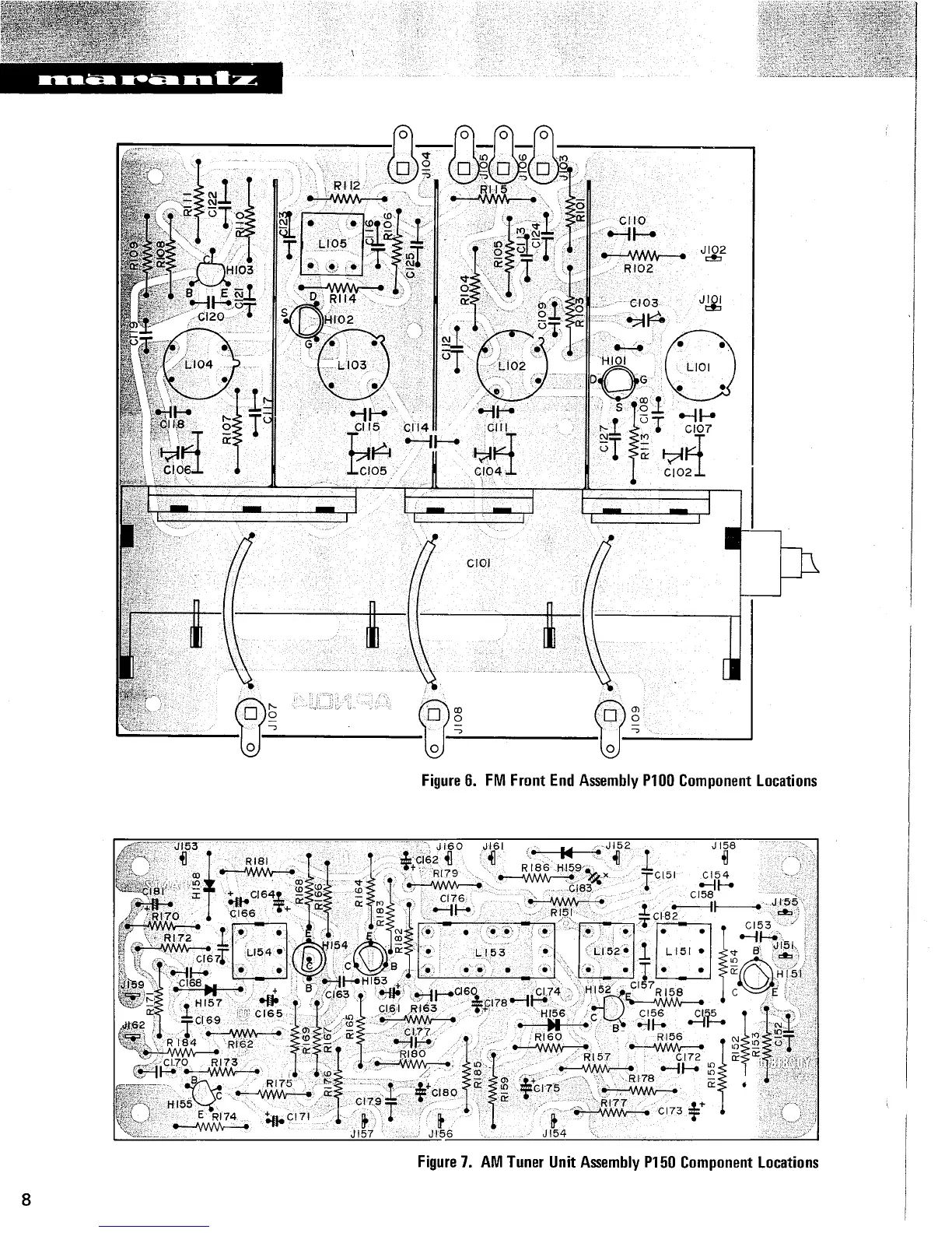 Marantz 115 - FM Front End Assembly P100 Component Locations; AM Tuner Unit Assembly P150 Component Locations