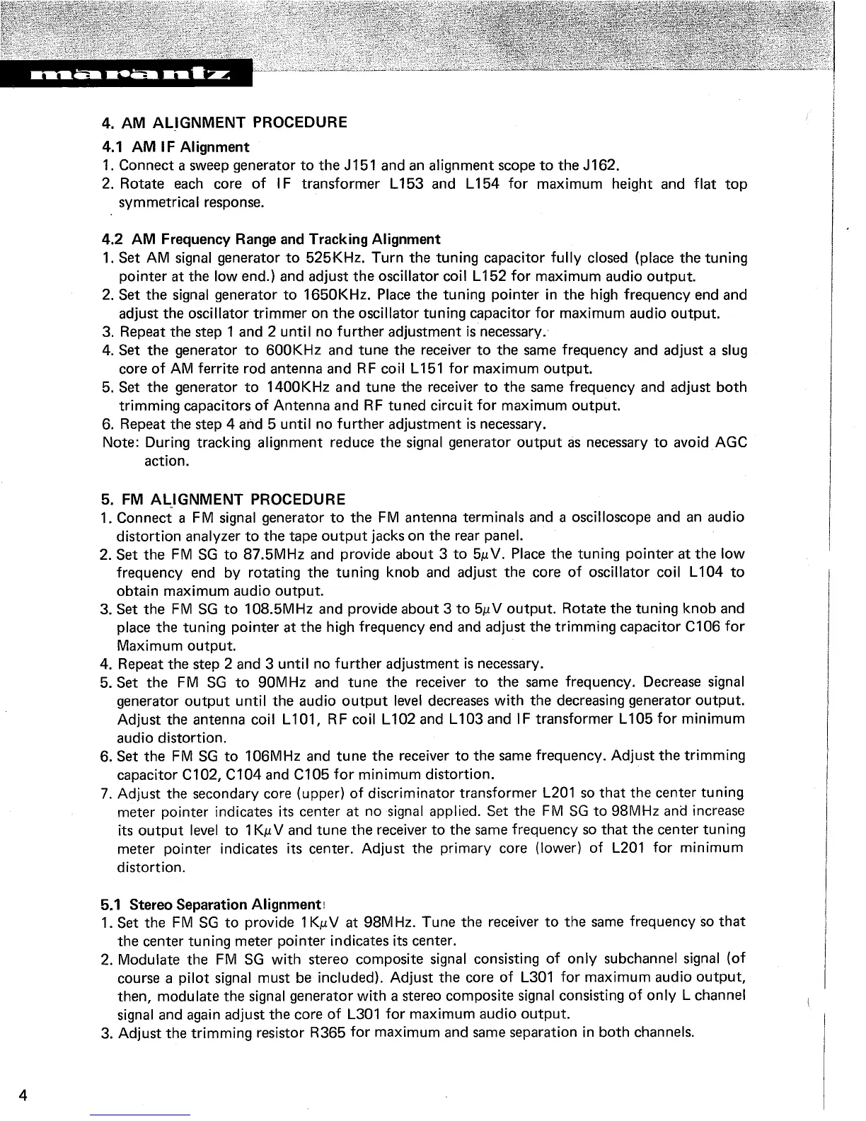 Marantz 115 - Service and Alignment Procedures; AM and FM Alignment Procedures