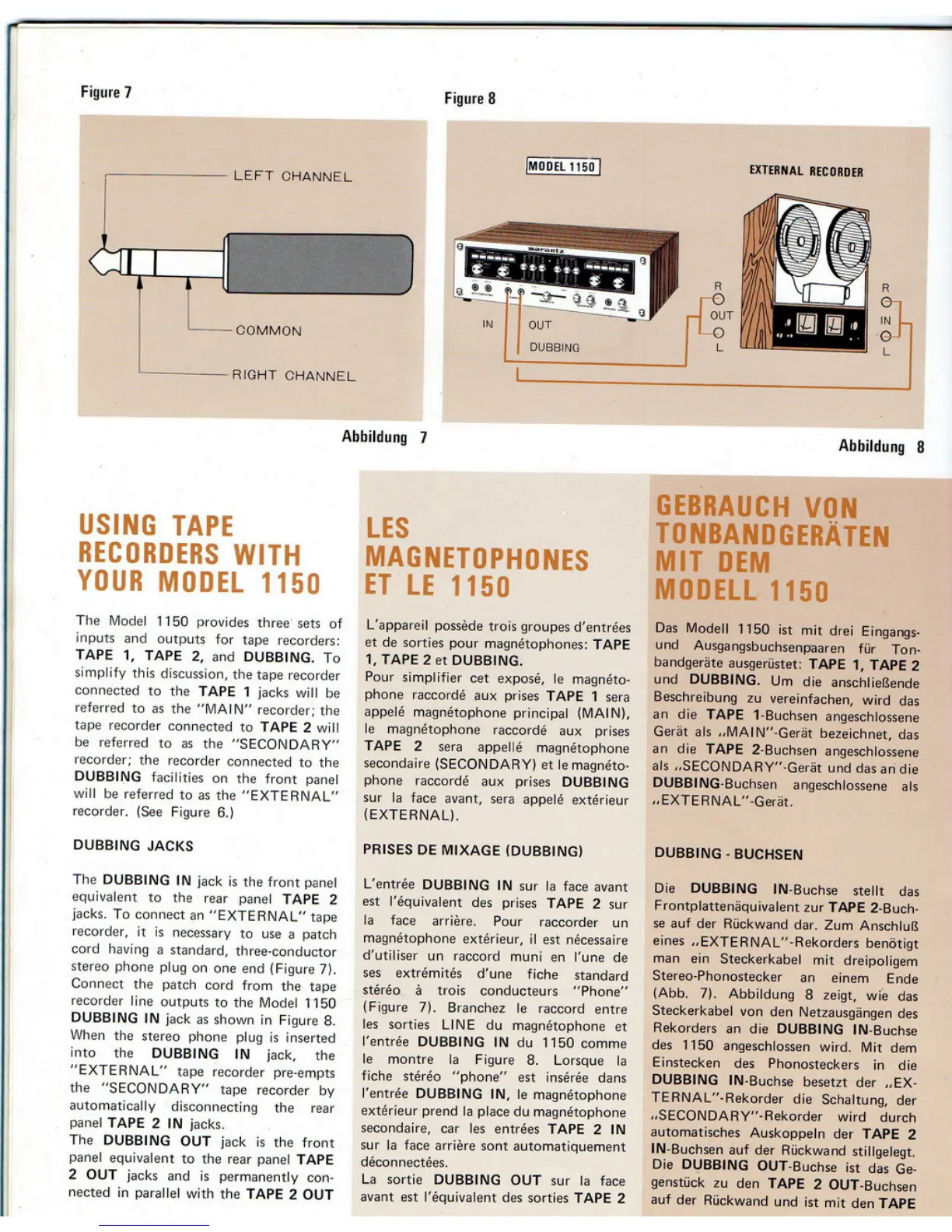 Marantz 1150 - USING TAPE RECORDERS; USING TAPE RECORDERS WITH YOUR MODEL 1150