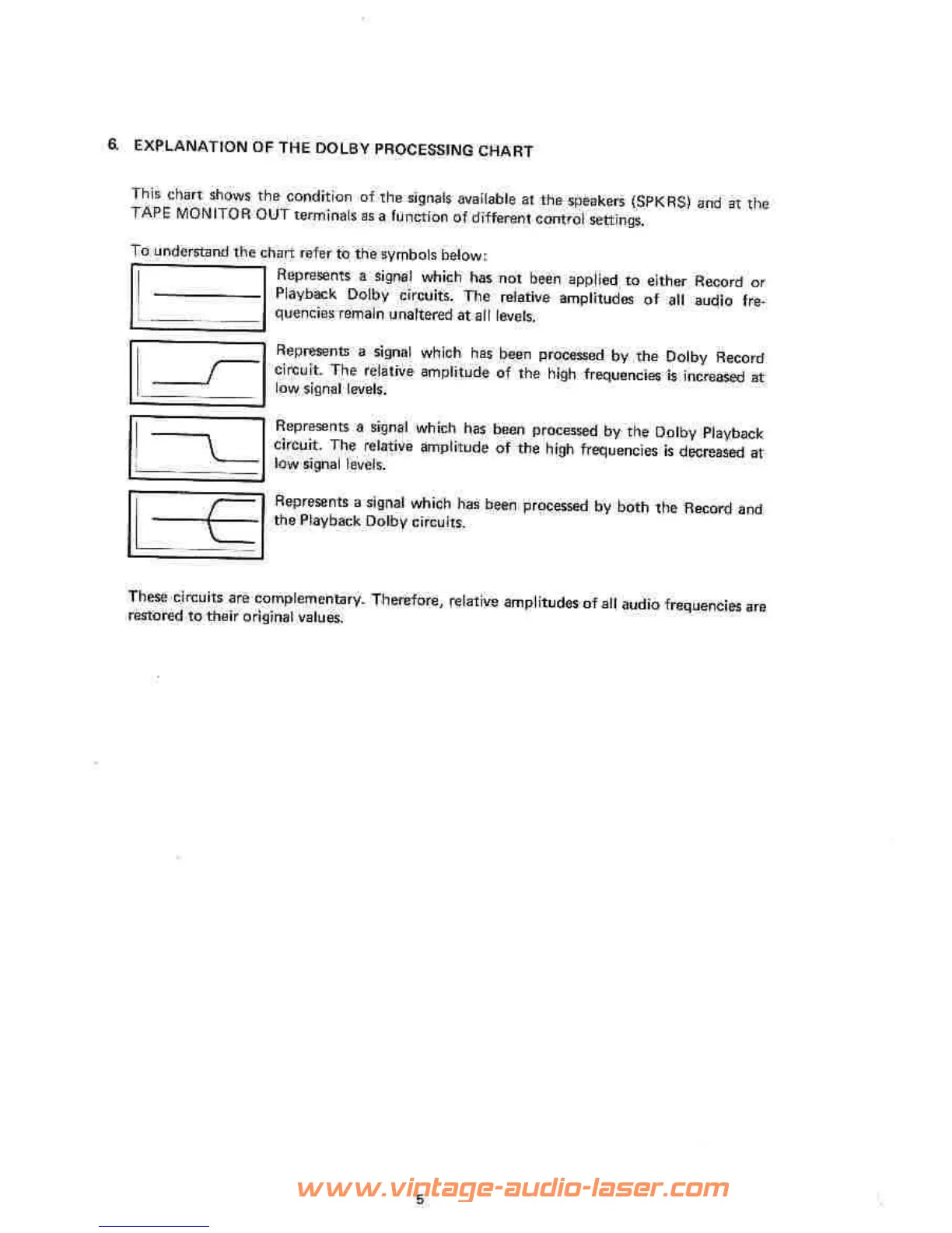 Marantz 1150D - Explanation of the Dolby Processing Chart