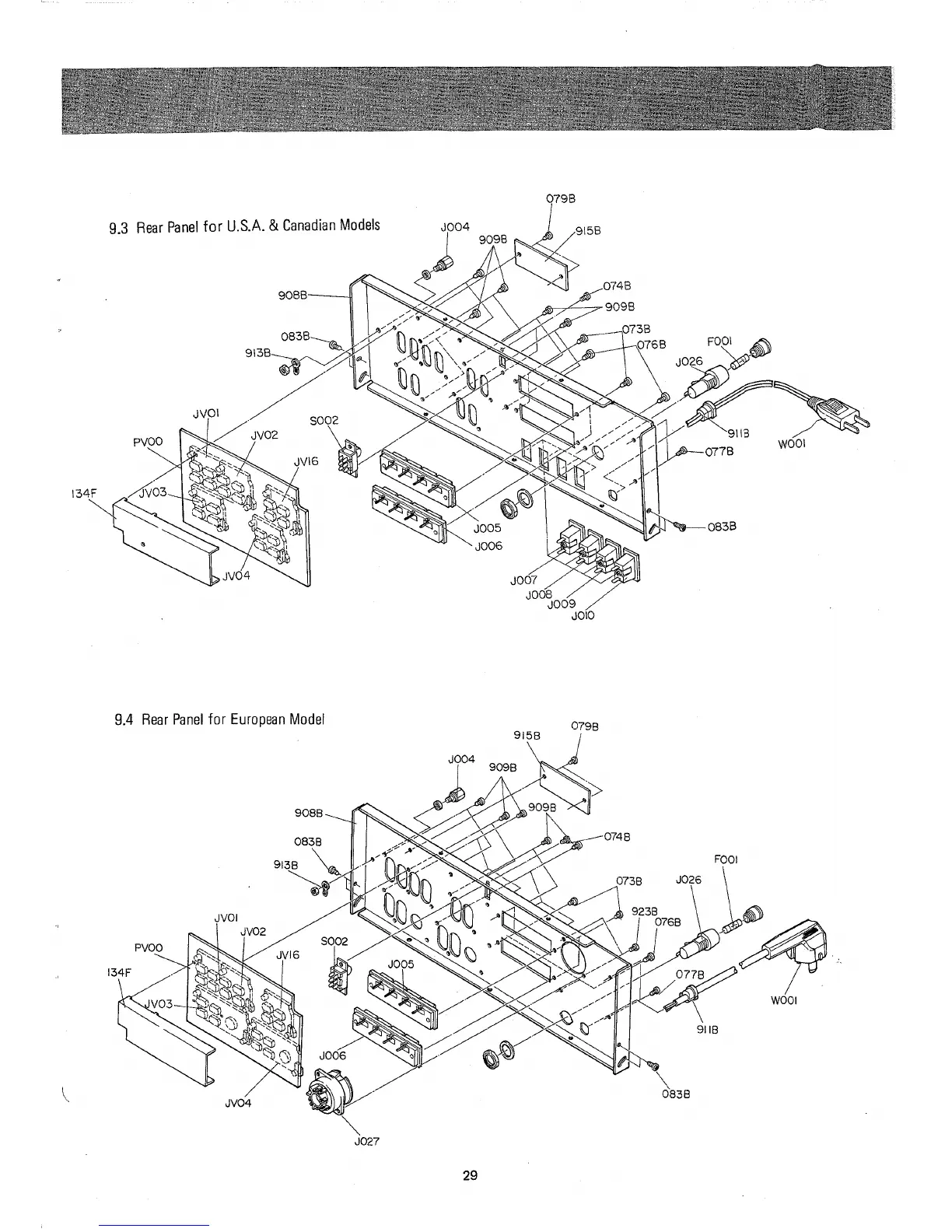 Marantz 1152DC - 9.3 Rear Panel Exploded View (USA;Canada); 9.4 Rear Panel Exploded View (European)